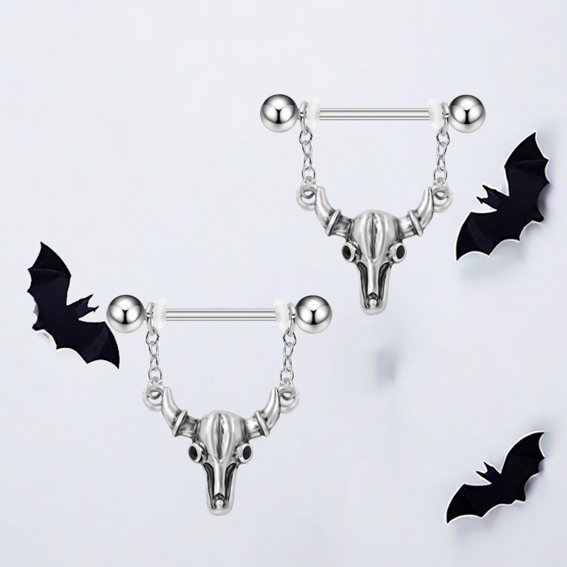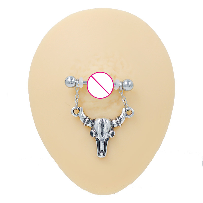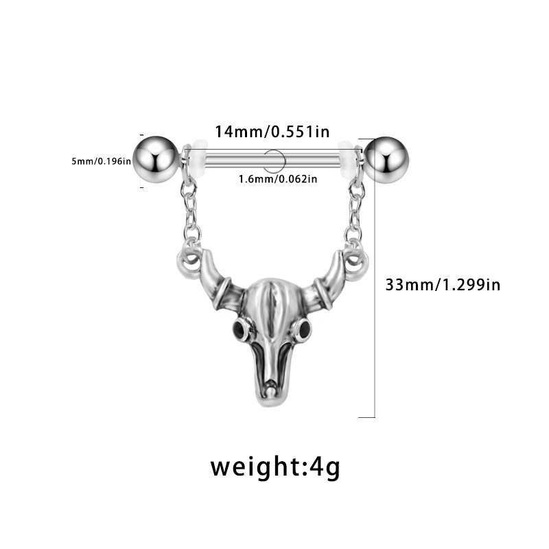 aleación de zinc anillo para pezón, con acero inoxidable 304, toro, chapado, Joyería & unisexo, 14x33mm, 10PCs/Grupo, Vendido por Grupo