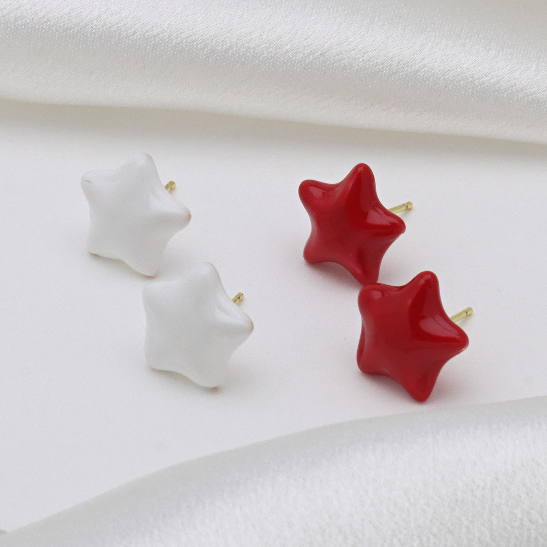 arete de latón, metal, Estrella, chapado, para mujer & esmalte, más colores para la opción, 15x15mm, Vendido por Par