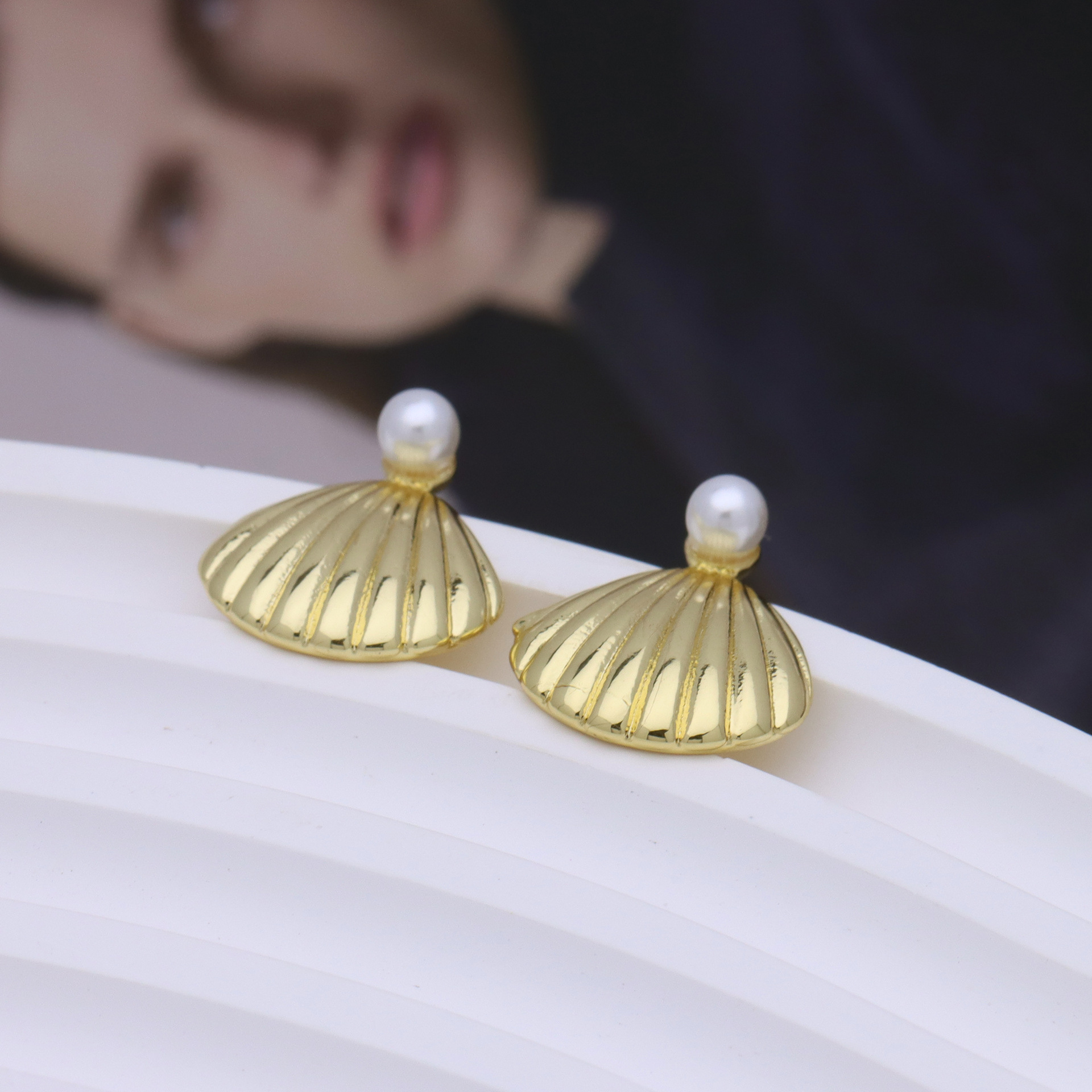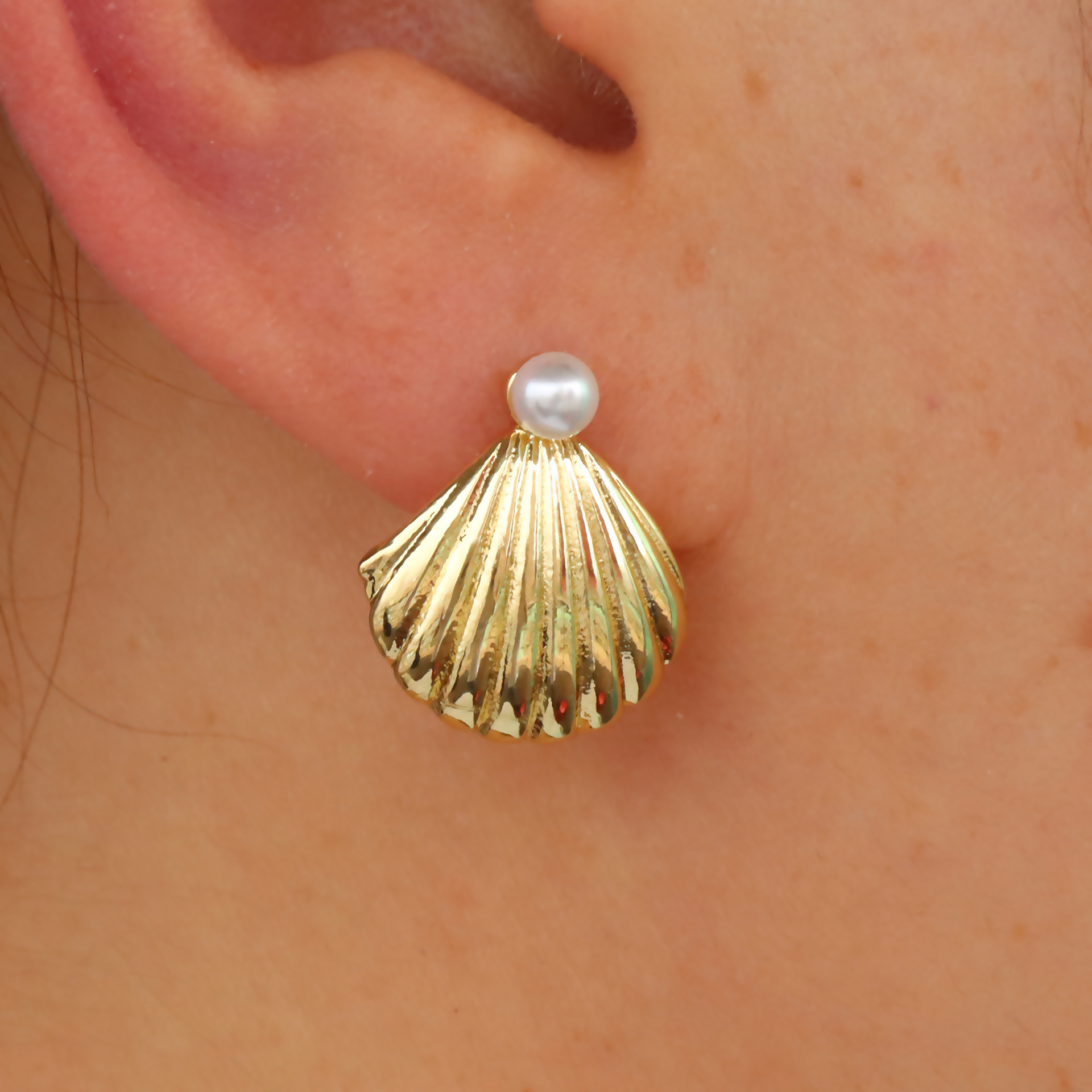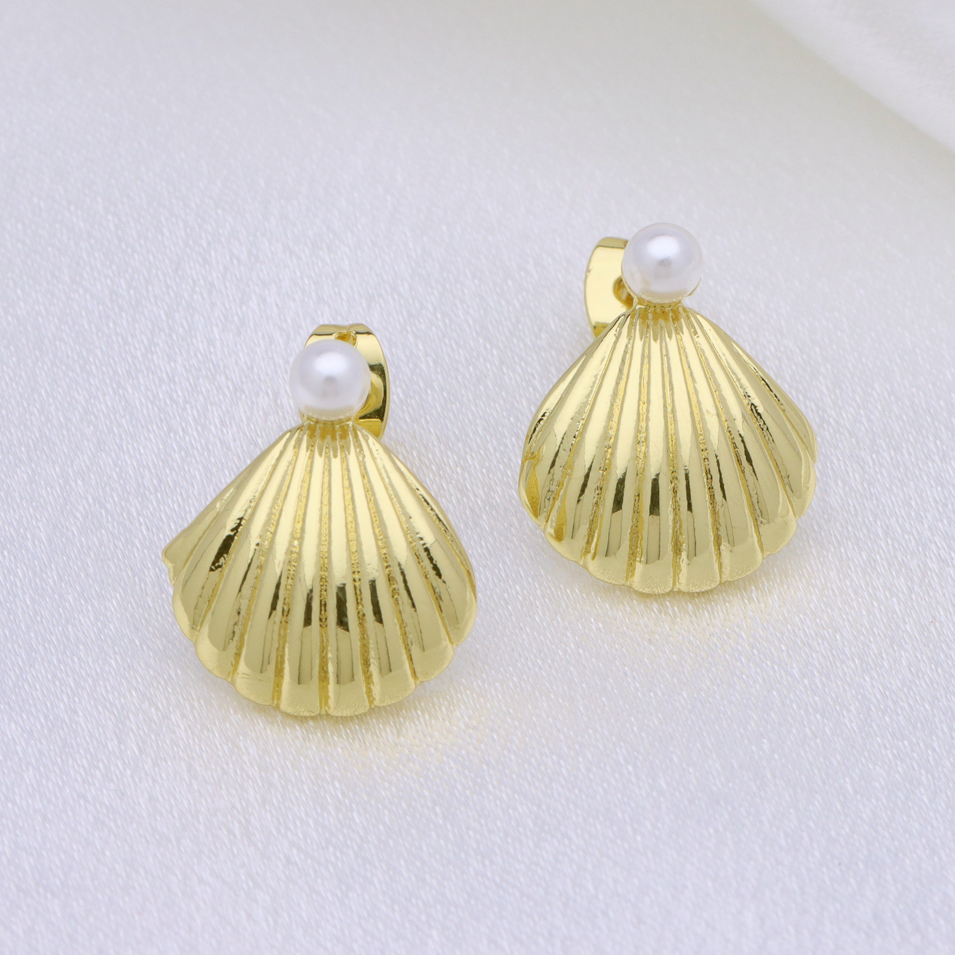 arete de latón, metal, con Perlas plásticas, Nácar, chapado en color dorado, para mujer, 15x18mm, Vendido por Par
