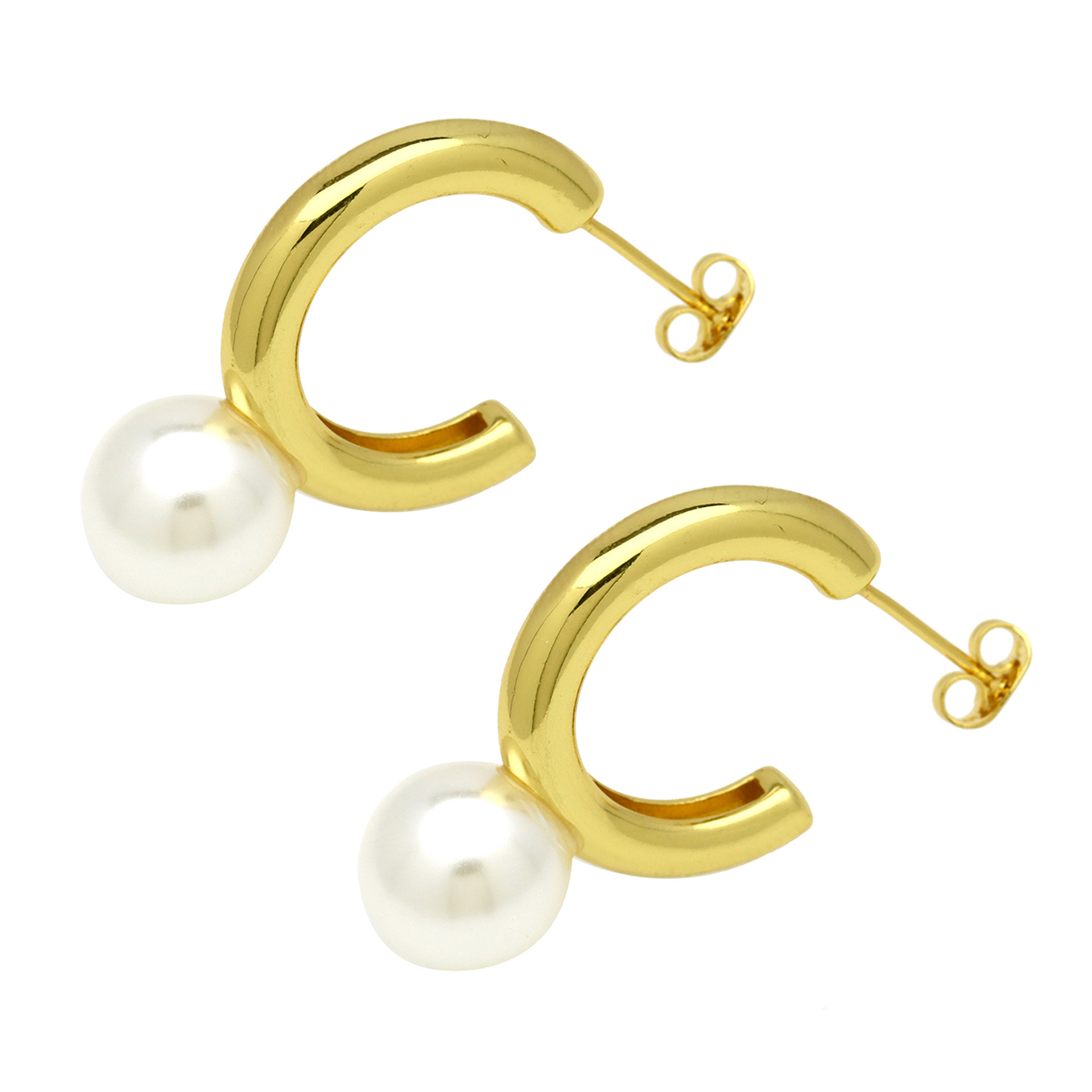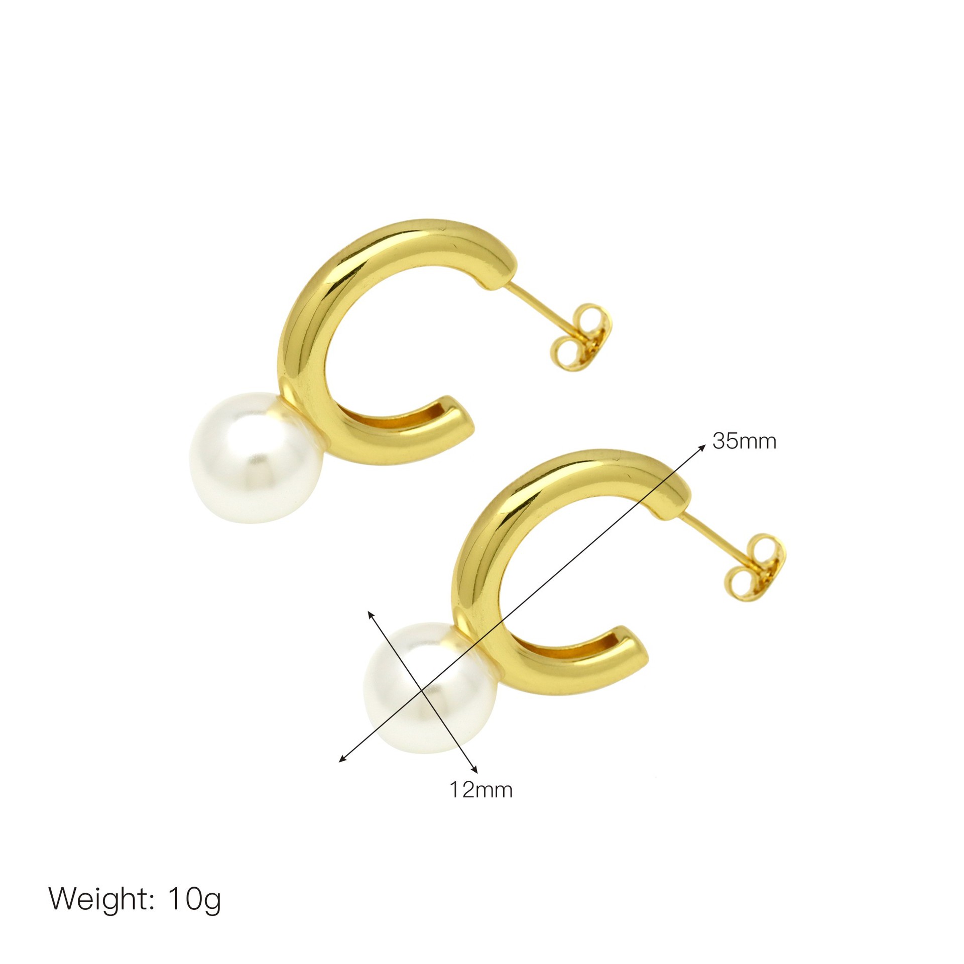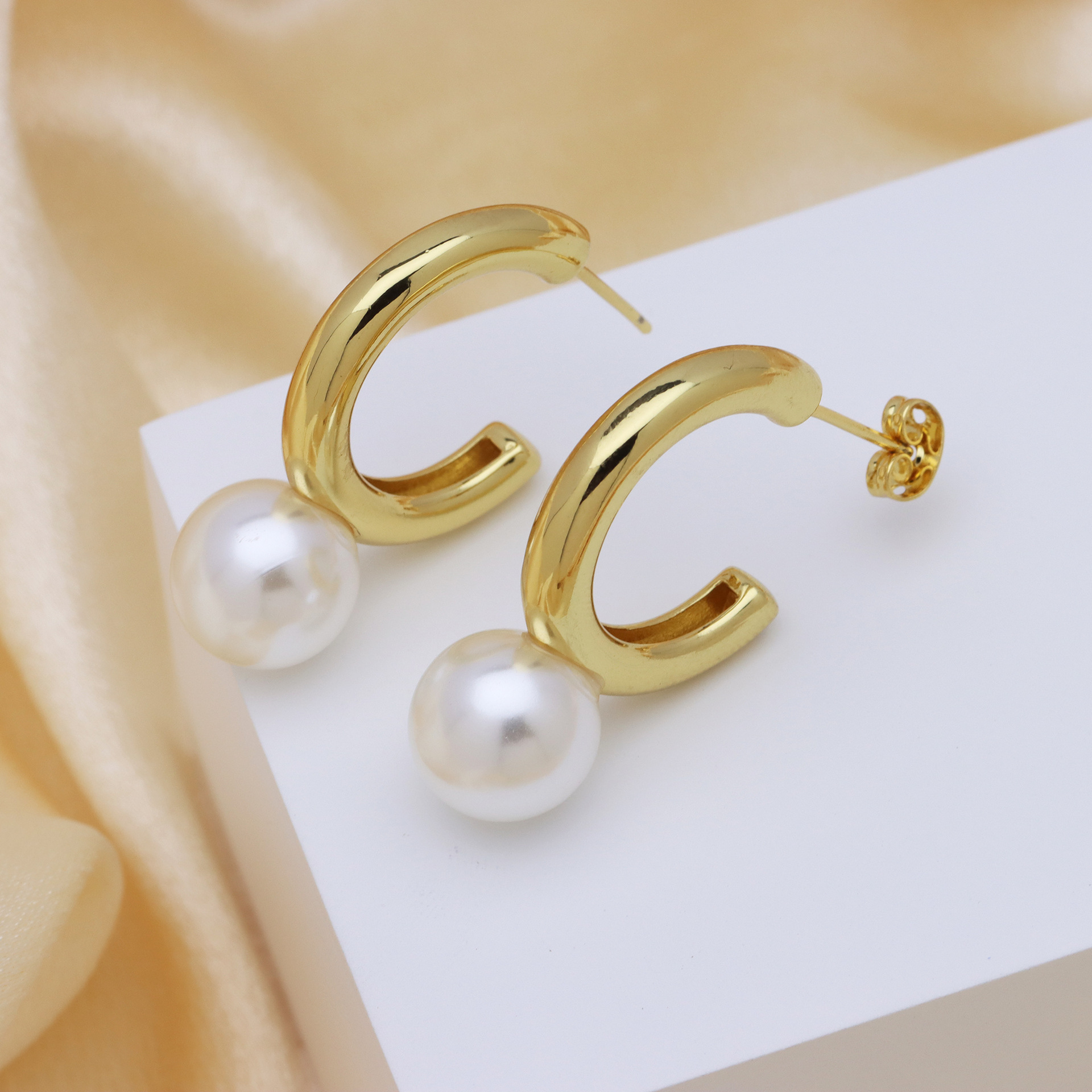 arete de latón, metal, con Perlas plásticas, chapado en color dorado, diferentes estilos para la opción & para mujer, más colores para la opción, Vendido por Par