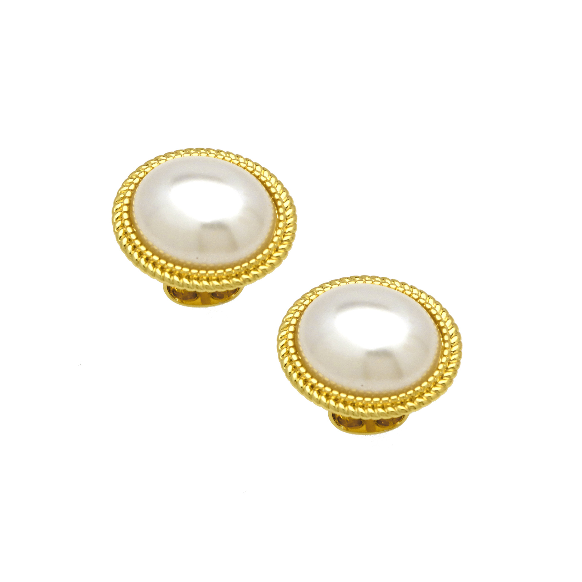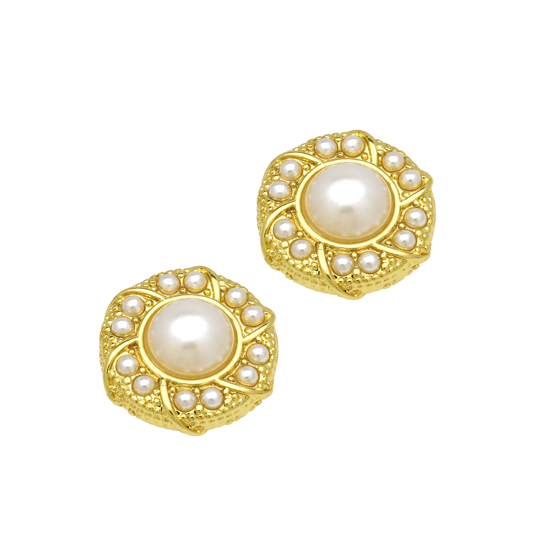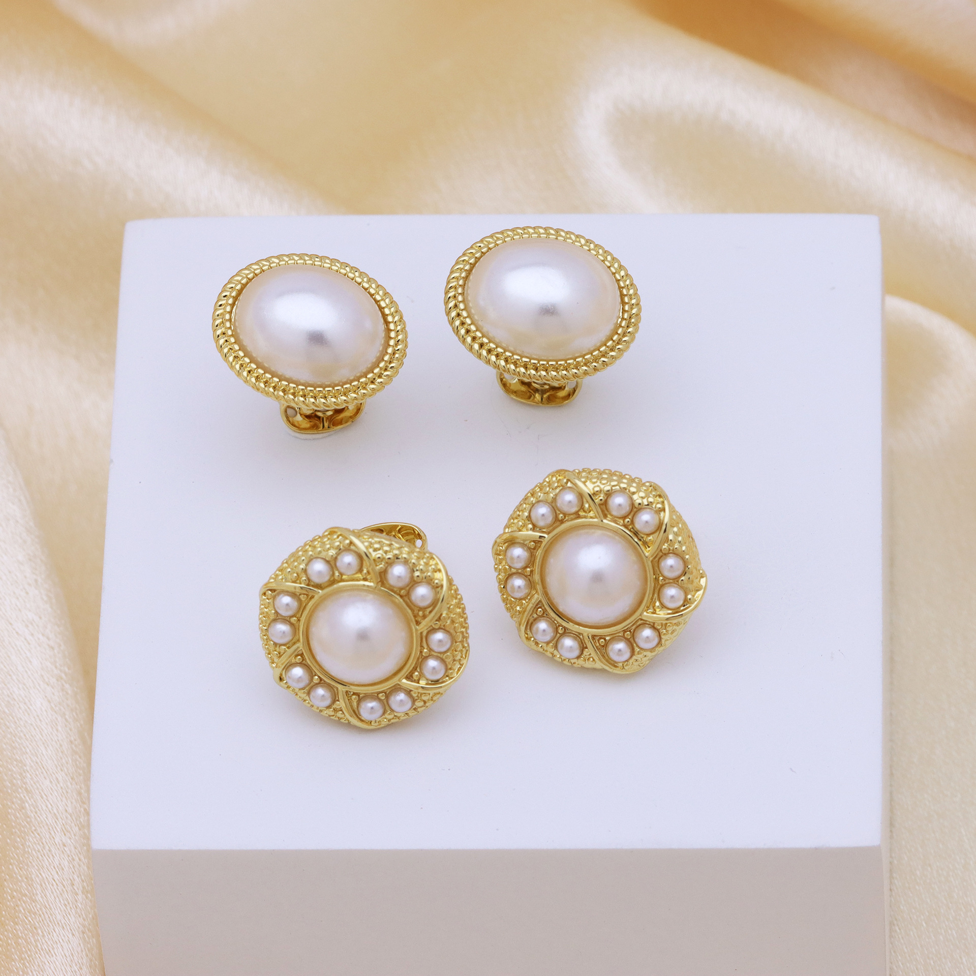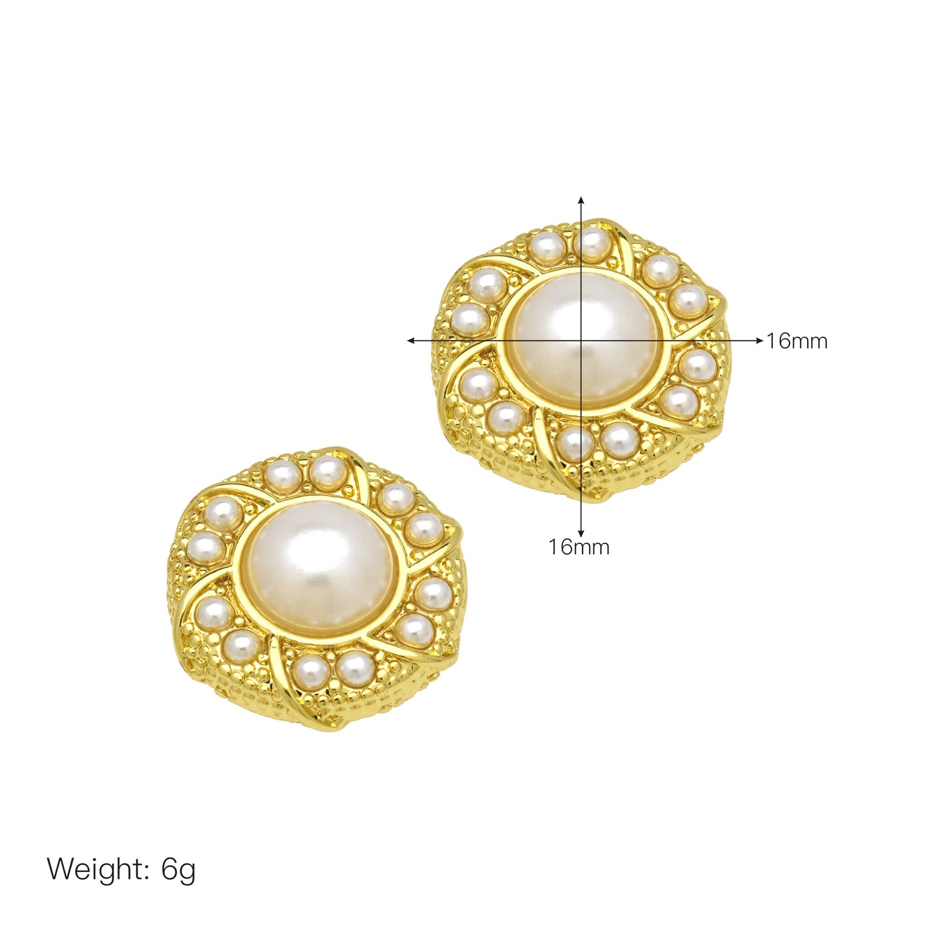 arete de latón, metal, con Perlas plásticas, chapado en color dorado, diferentes estilos para la opción & para mujer, más colores para la opción, Vendido por Par
