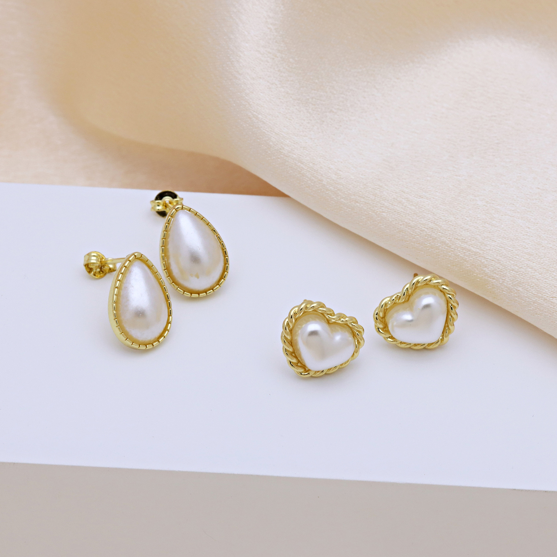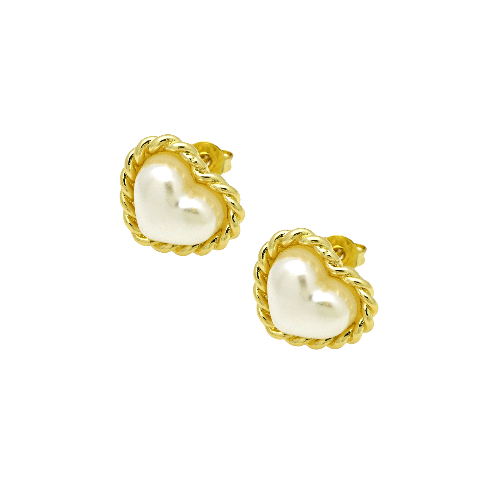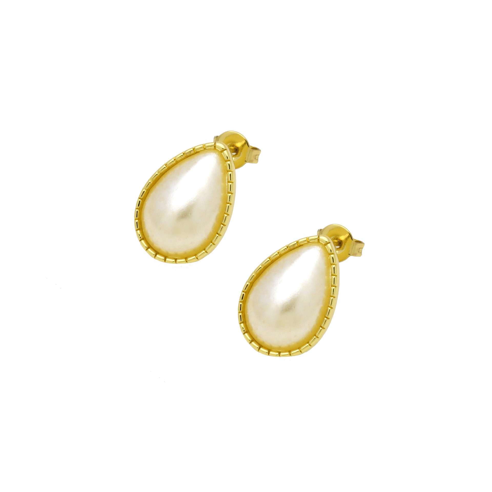 arete de latón, metal, con Perlas plásticas, chapado en color dorado, diferentes estilos para la opción & para mujer, más colores para la opción, Vendido por Par