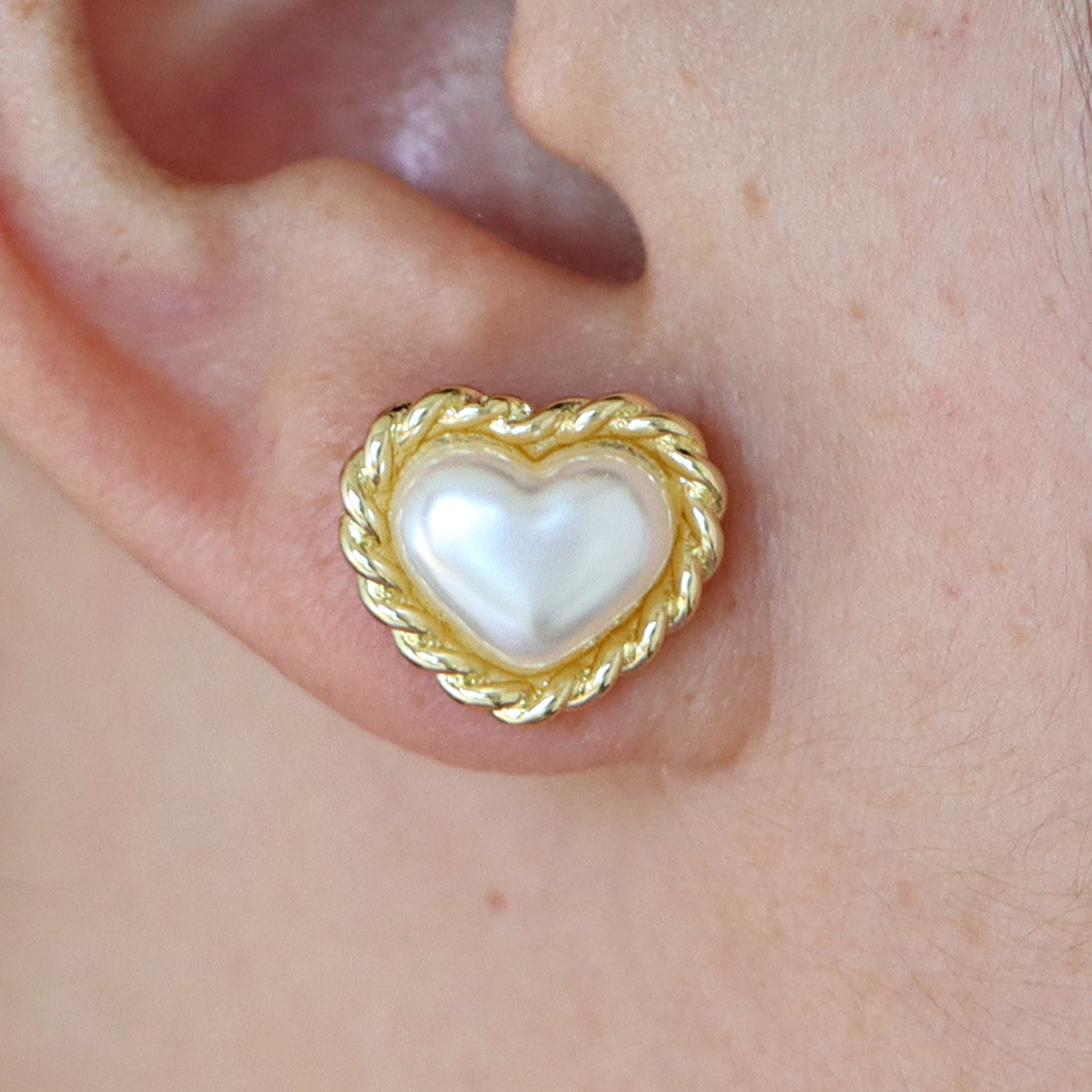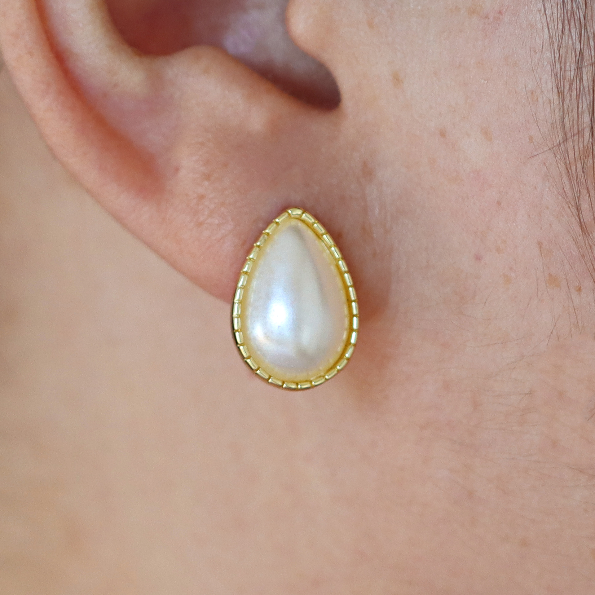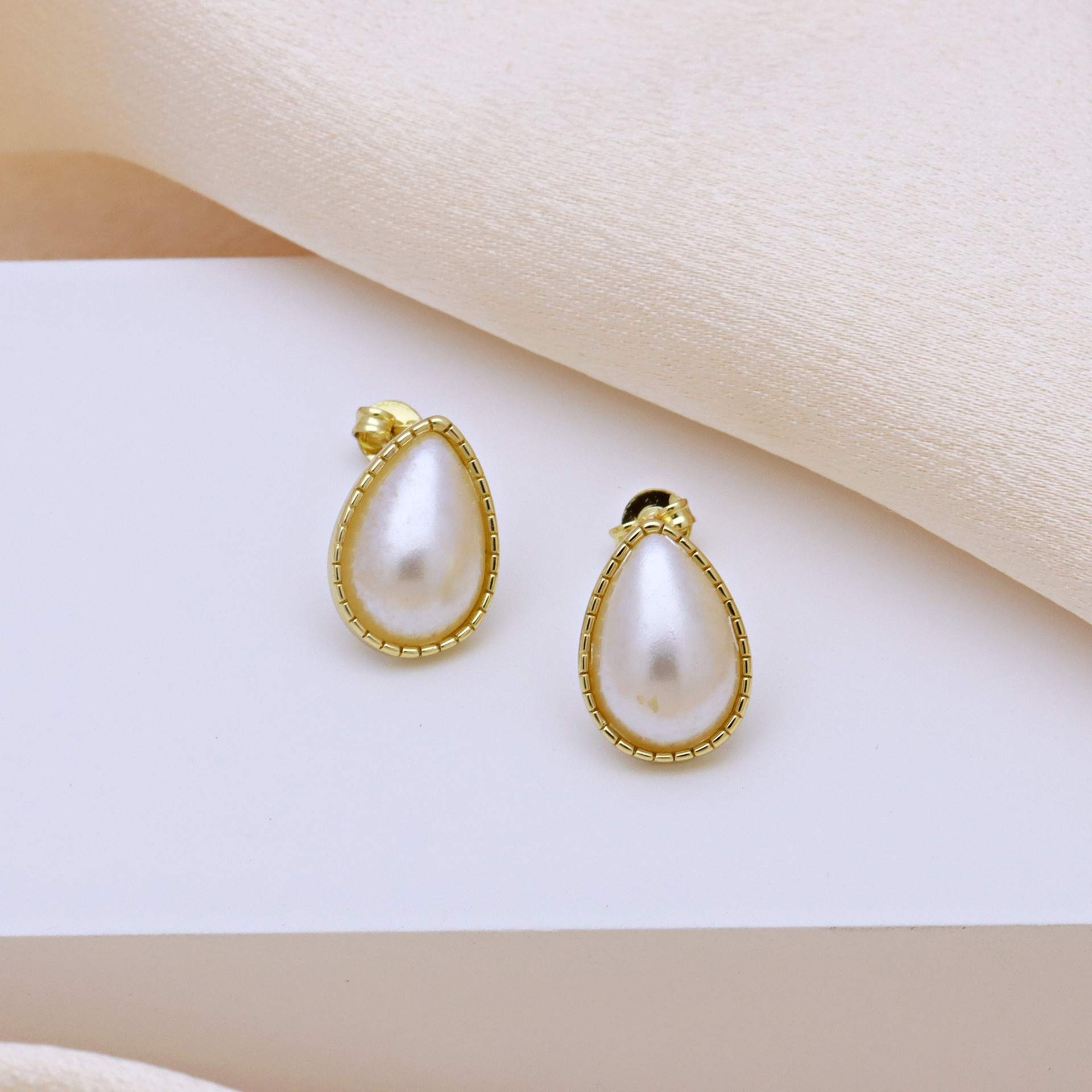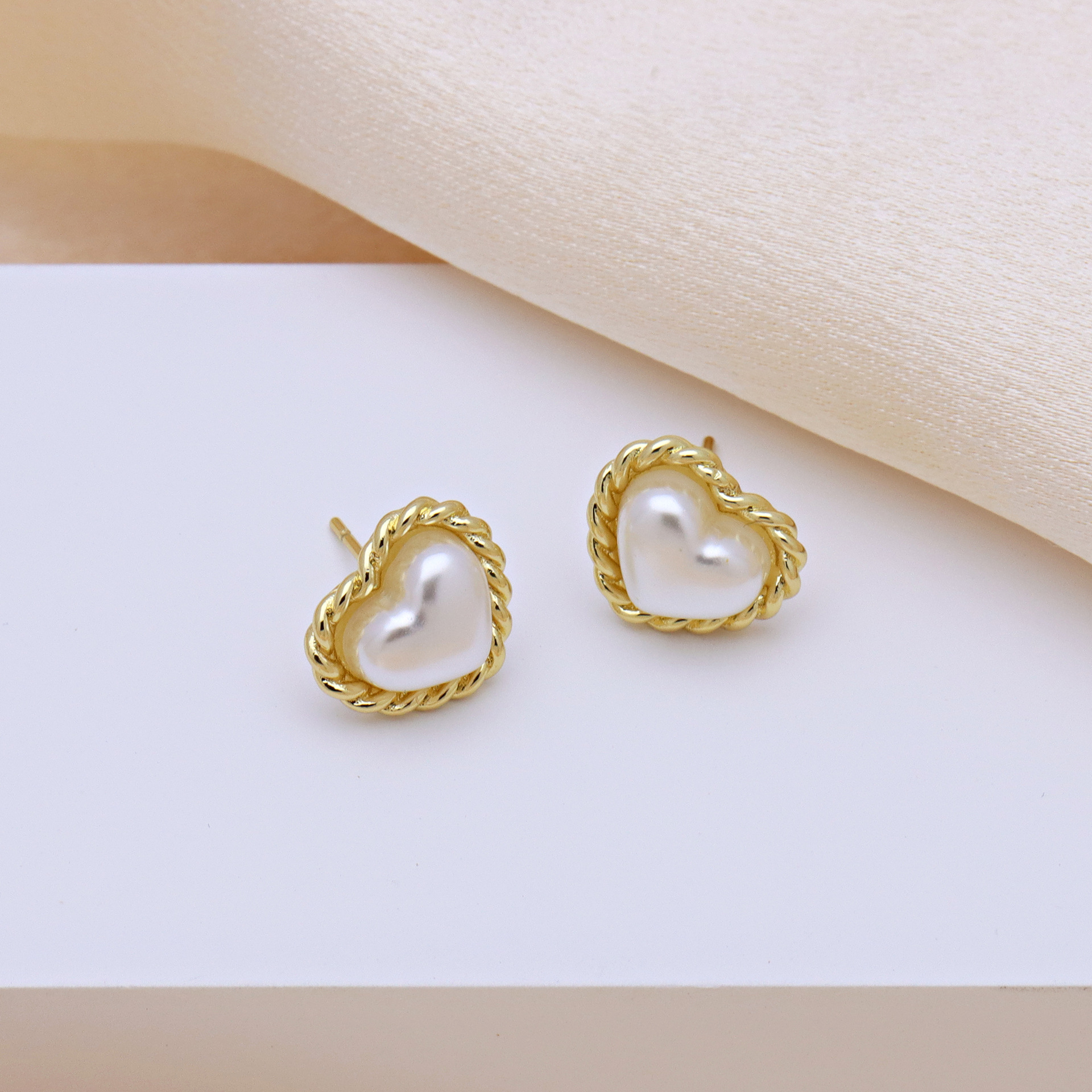 arete de latón, metal, con Perlas plásticas, chapado en color dorado, diferentes estilos para la opción & para mujer, más colores para la opción, Vendido por Par
