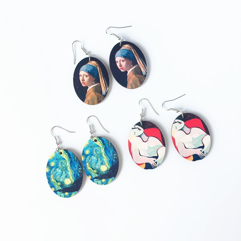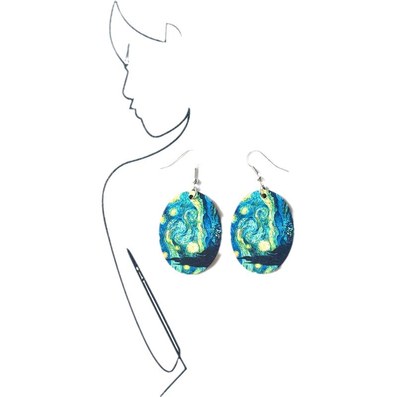 madera Pendientes con Colgantes, con aleación de zinc, Óvalo, Impresión, diferentes estilos para la opción & para mujer, 30x60mm, Vendido por Par