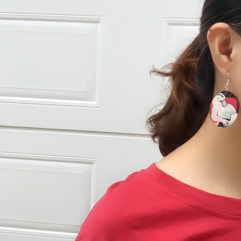 Pendiente de madera, Donut, manejo del pincel, Rojo, 60x60x6mm, agujero:aproximado 19mm, longitud:3 , Vendido por Par