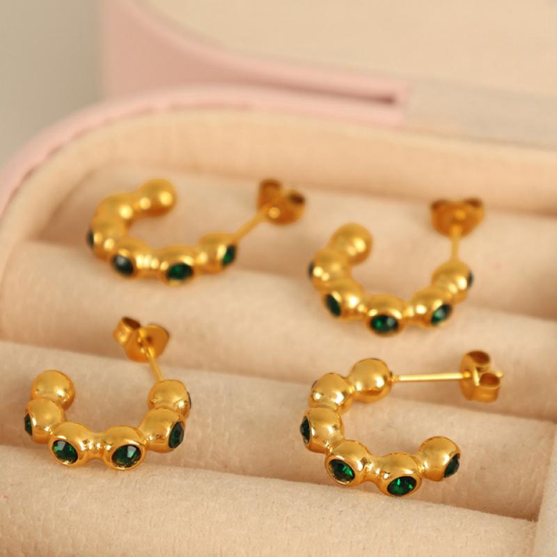 Arito de imitación de diamante de acero inoxidable, acero inoxidable 304, Joyería & para mujer & con diamantes de imitación, dorado, Vendido por Par