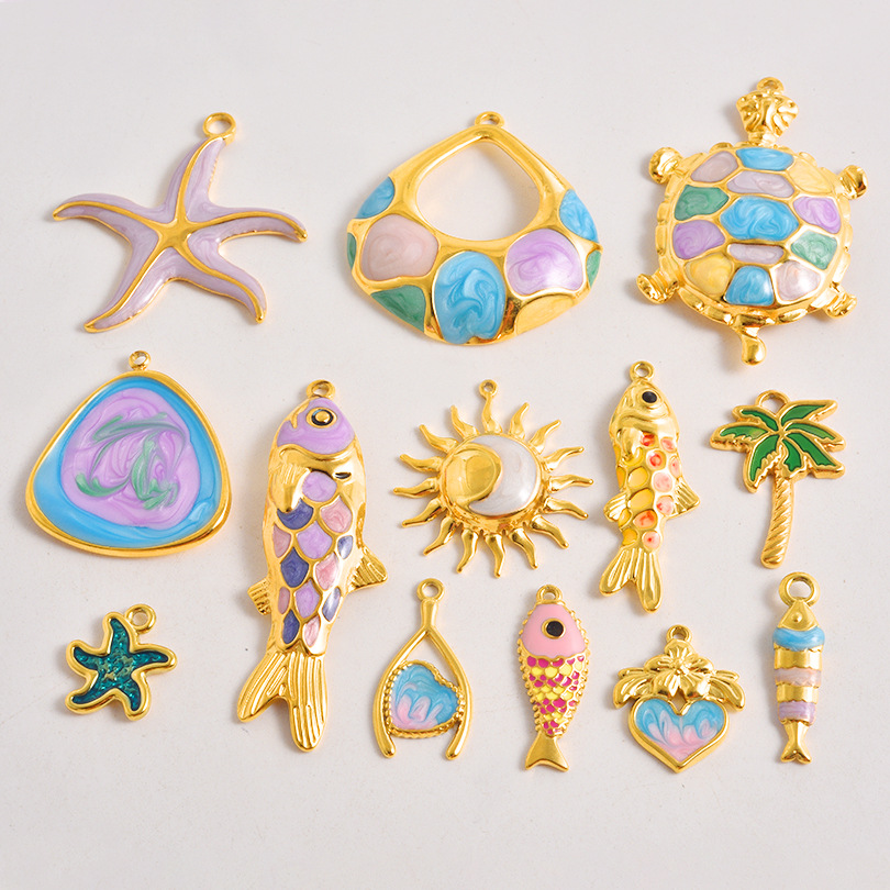 colgantes de acero inoxidable de esmalte, acero inoxidable 304, chapado en color dorado, Bricolaje, más colores para la opción, 3PCs/Bolsa, Vendido por Bolsa