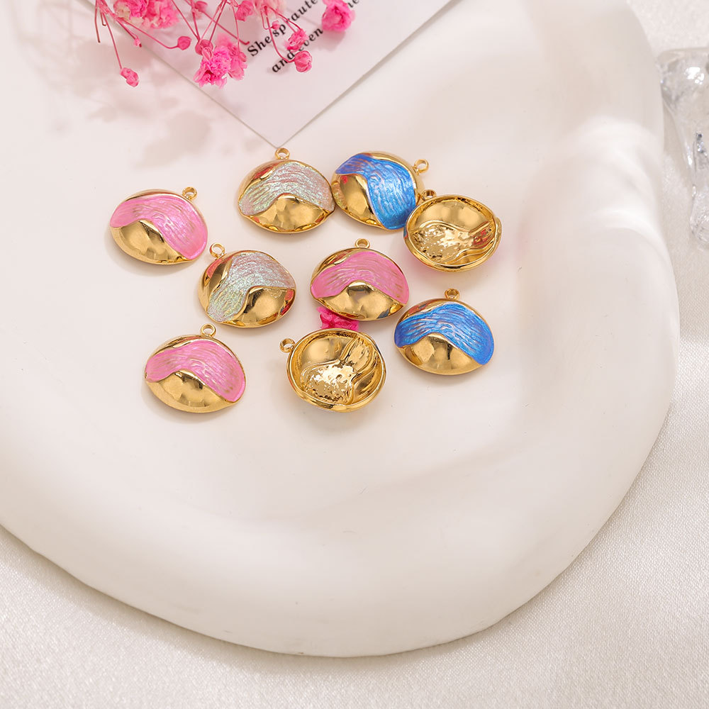colgantes de acero inoxidable de esmalte, acero inoxidable 304, Esférico, chapado en color dorado, Bricolaje, más colores para la opción, 15.6x17.5mm, agujero:aproximado 1.5mm, Vendido por UD