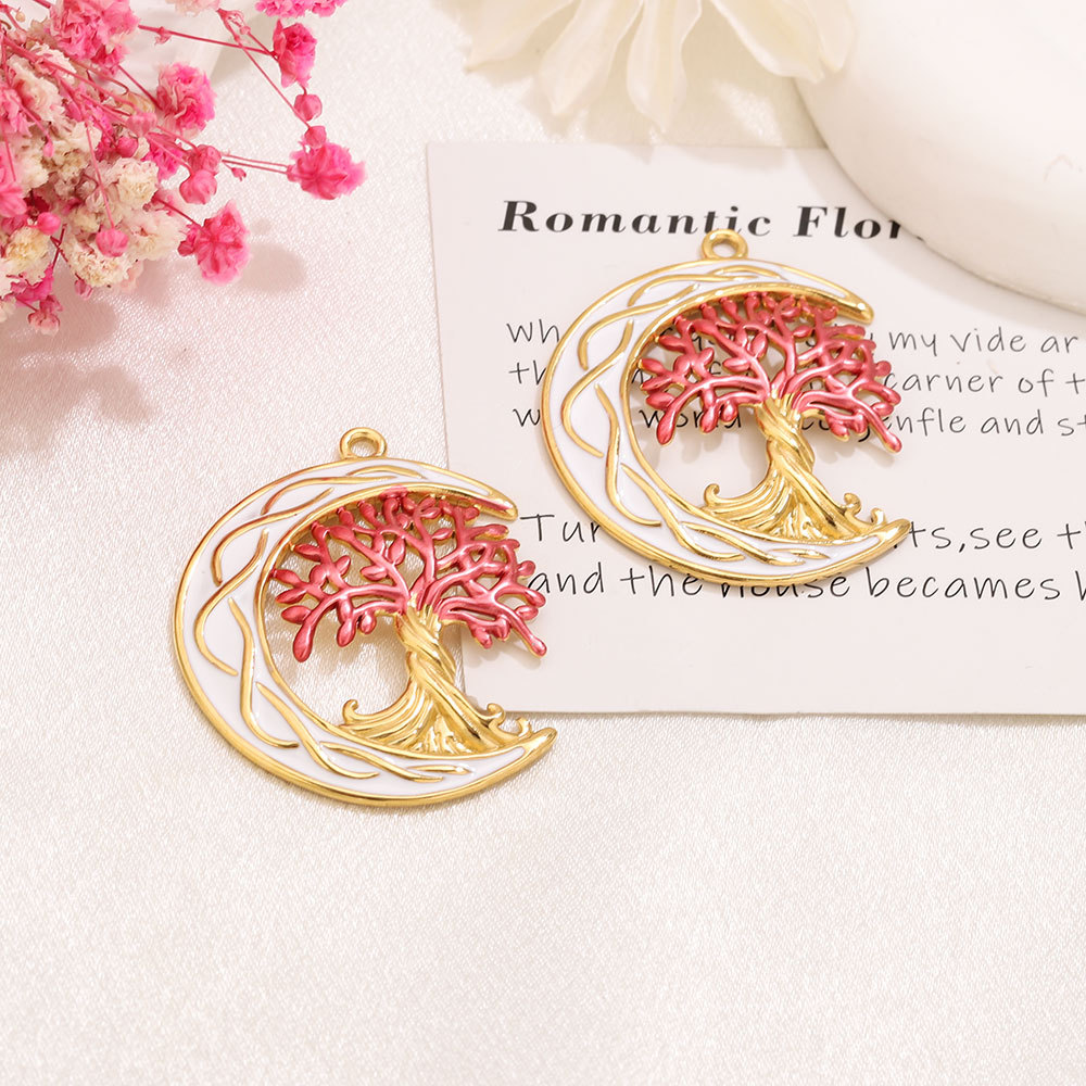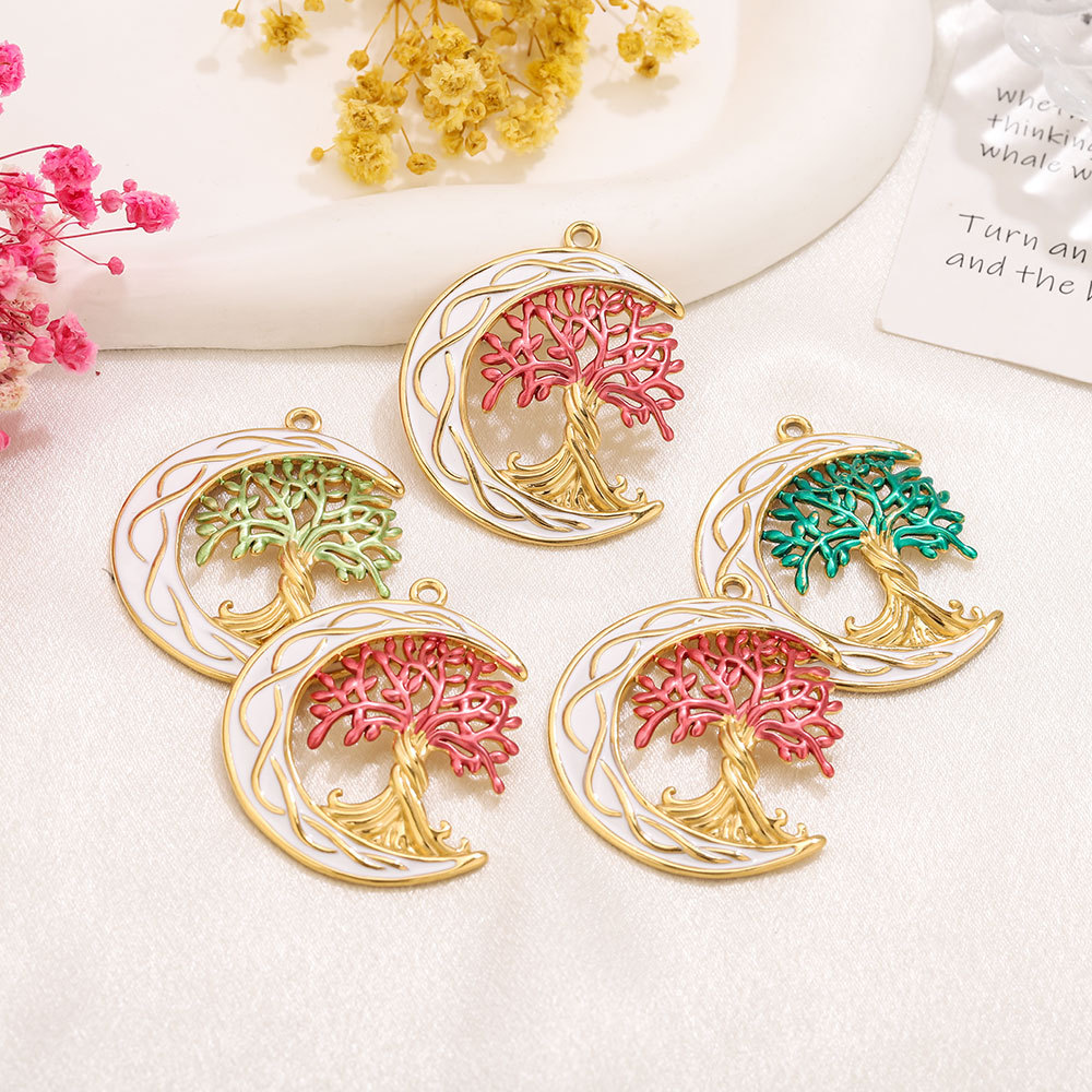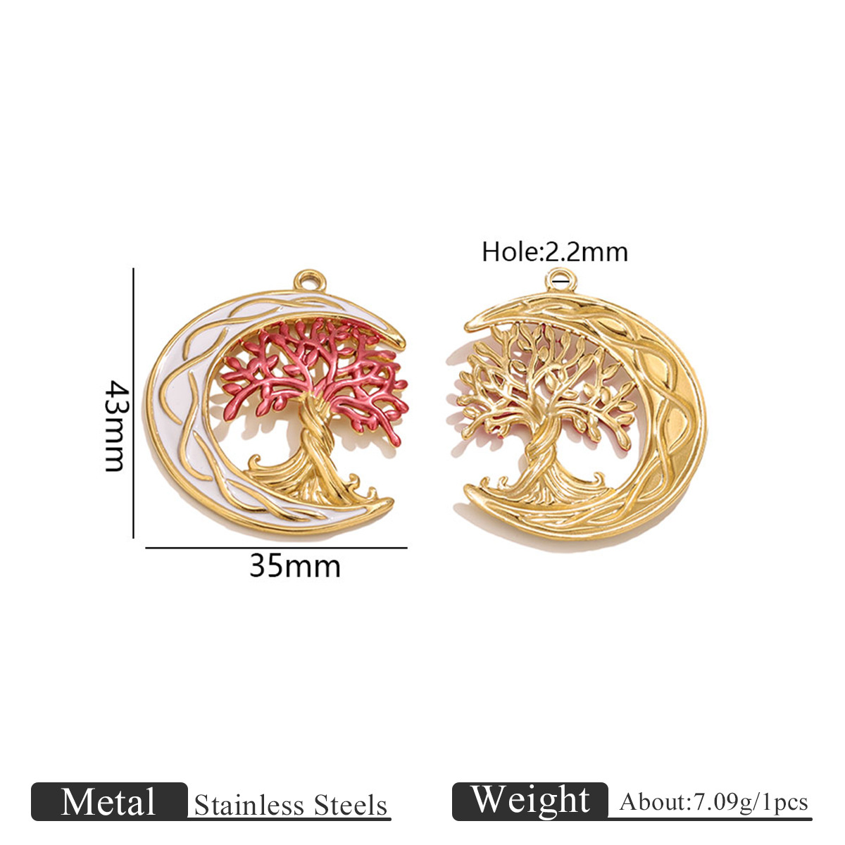 colgantes de acero inoxidable de esmalte, acero inoxidable 304, Árbol, chapado en color dorado, Bricolaje, más colores para la opción, 35x43mm, agujero:aproximado 2.2mm, Vendido por UD