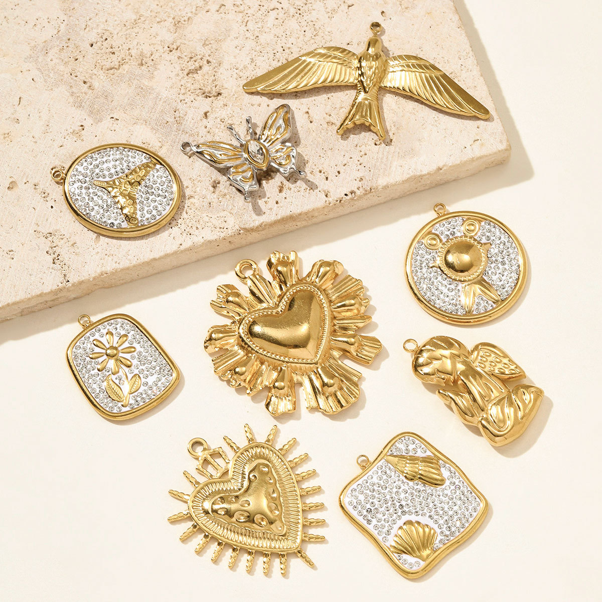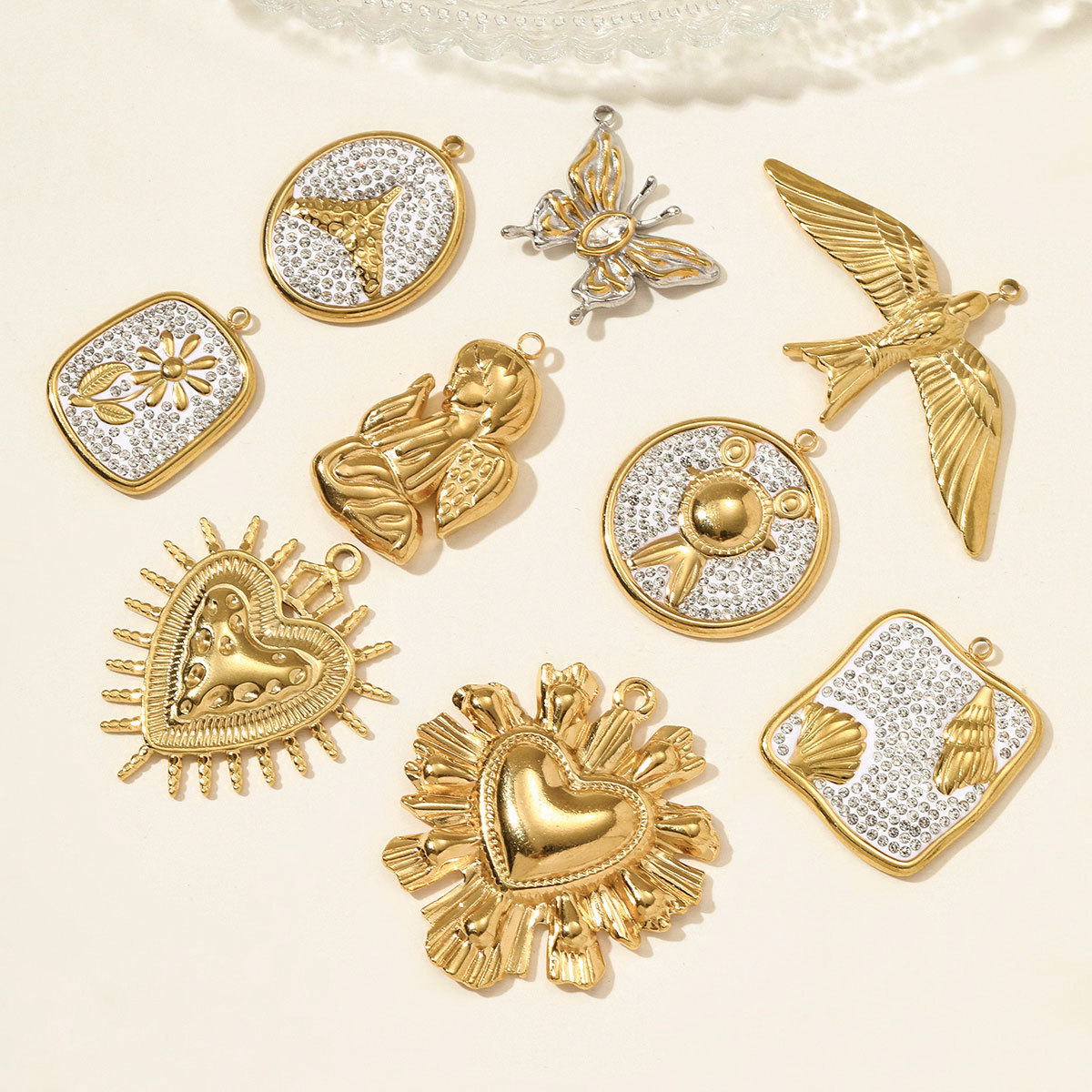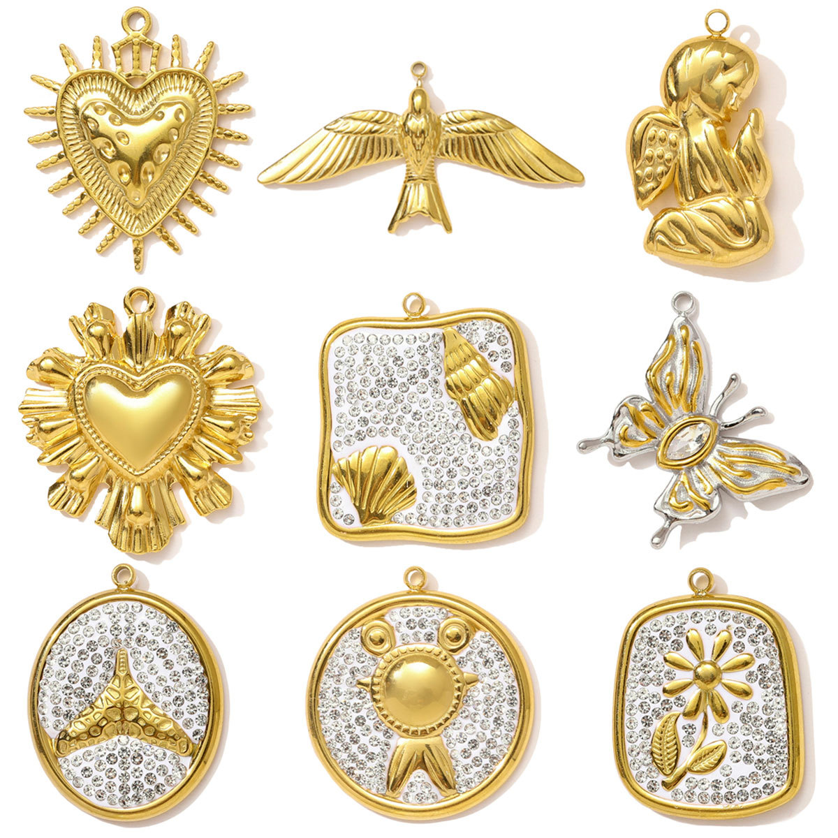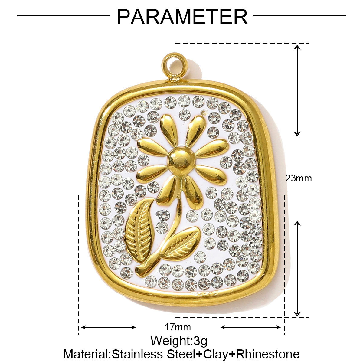 colgantes del acero inoxidable con cúbico zirconia, acero inoxidable 304, con arcillabarro, chapado en color dorado, Bricolaje & micro arcilla de zirconia cúbica & con diamantes de imitación, más colores para la opción, 3PCs/Bolsa, Vendido por Bolsa