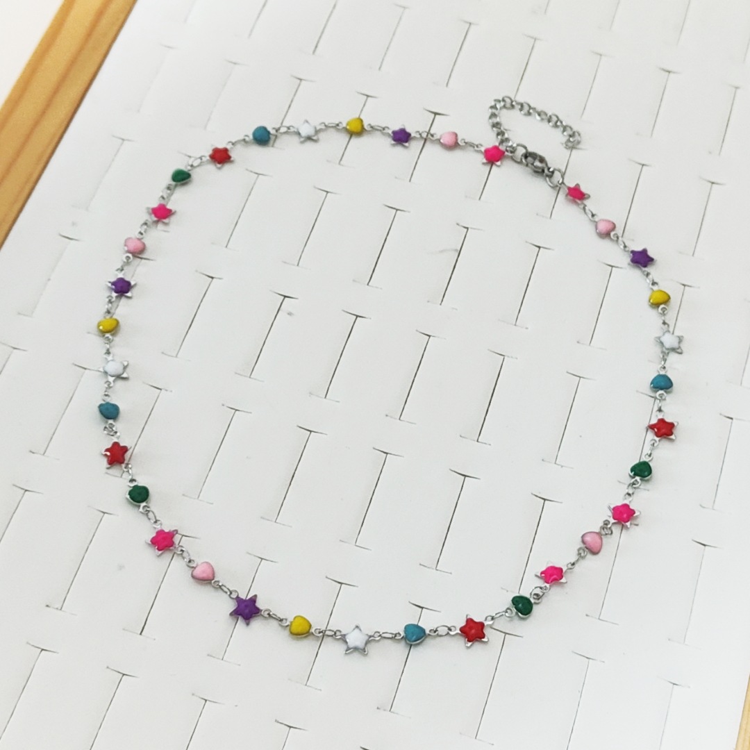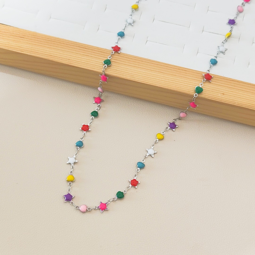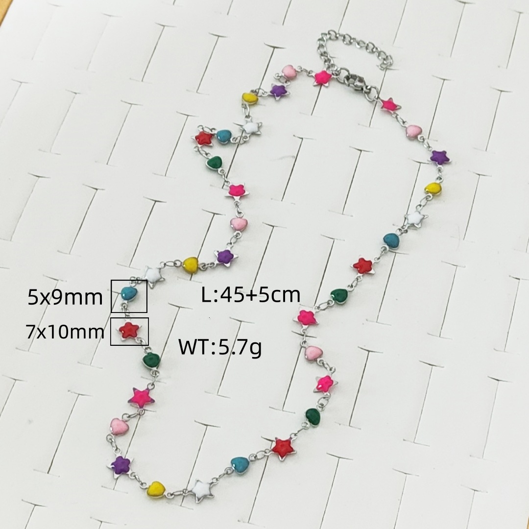 Collar de cadena de acero inoxidable, acero inoxidable 304, Estrella, chapado en color de plata, para mujer & esmalte, multicolor, Vendido por UD