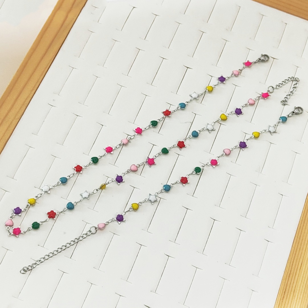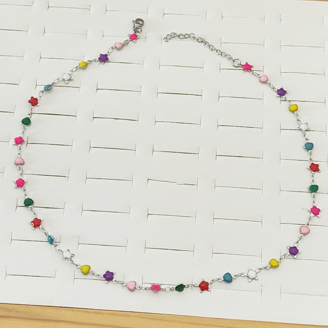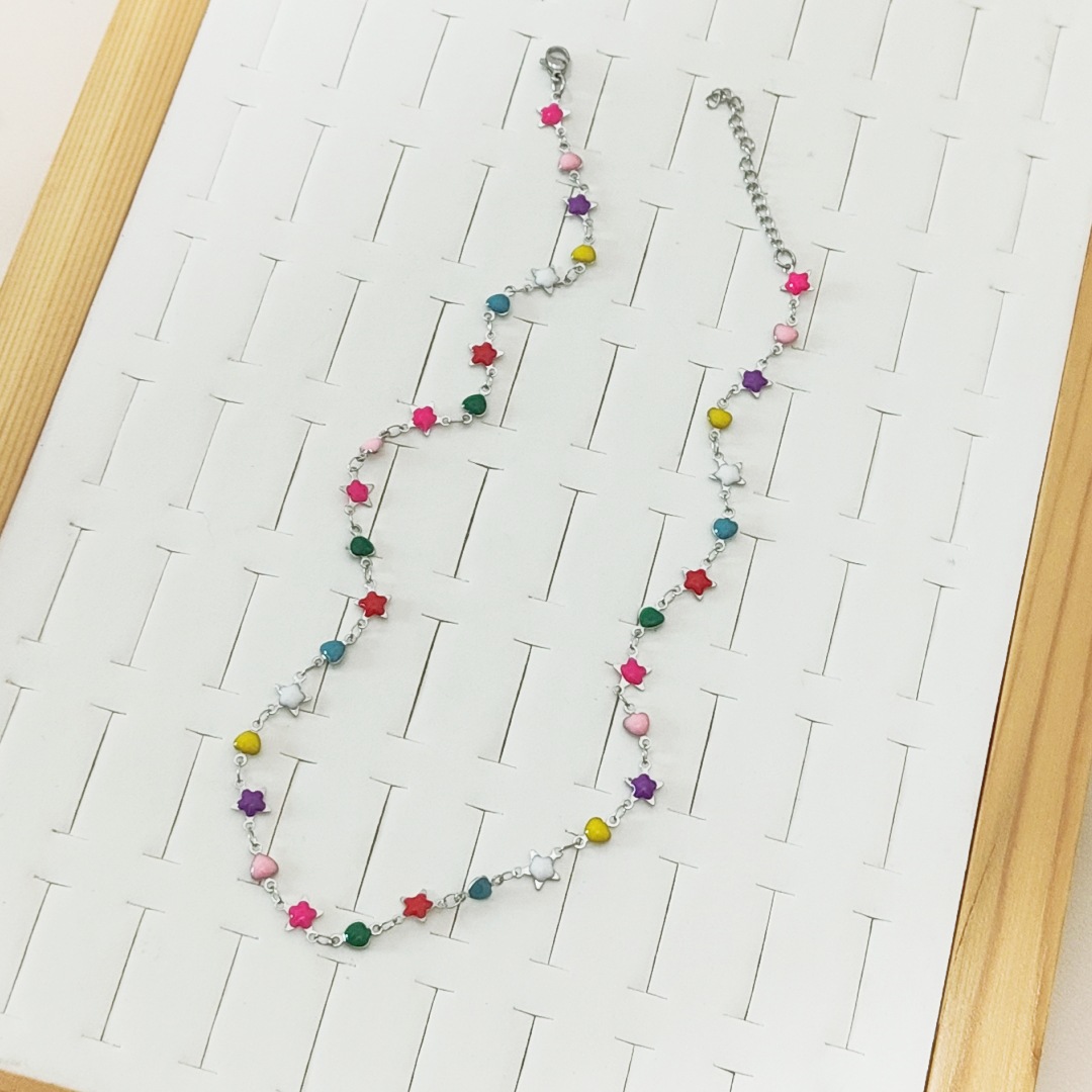 Collar de cadena de acero inoxidable, acero inoxidable 304, Estrella, chapado en color de plata, para mujer & esmalte, multicolor, Vendido por UD