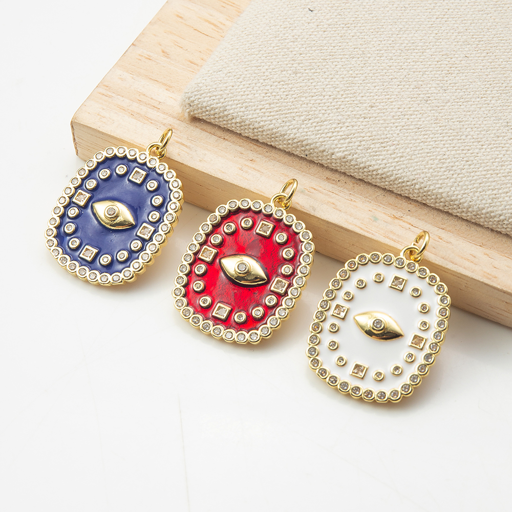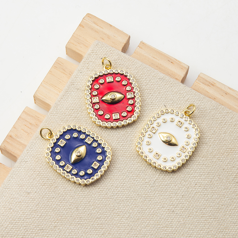 Moda Mal Ojo Pendiente, metal, con Taladro de vidrio, chapado en color dorado, Joyería & Bricolaje & con diamantes de imitación, color mixto, 10x15x3mm, Vendido por UD