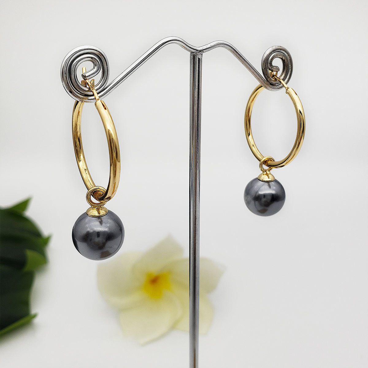metal Pendientes de palanca posterior, con Perlas plásticas, chapado en color dorado, Joyería & diverso tamaño para la opción & para mujer, Vendido por Par