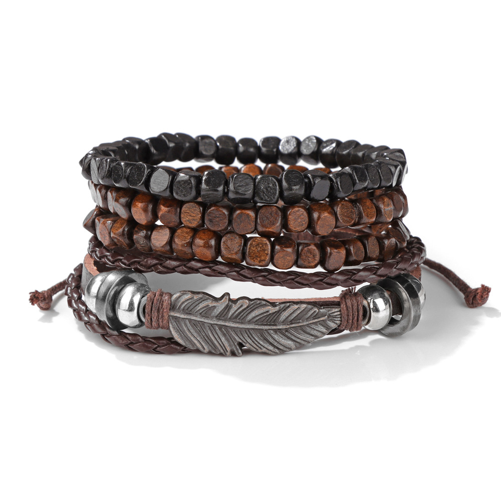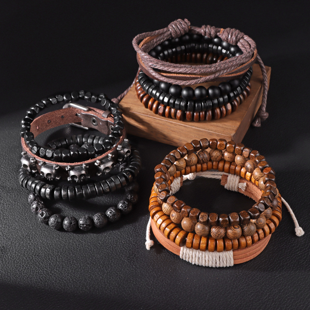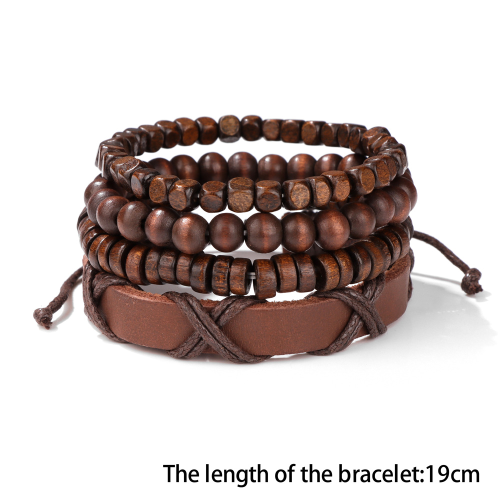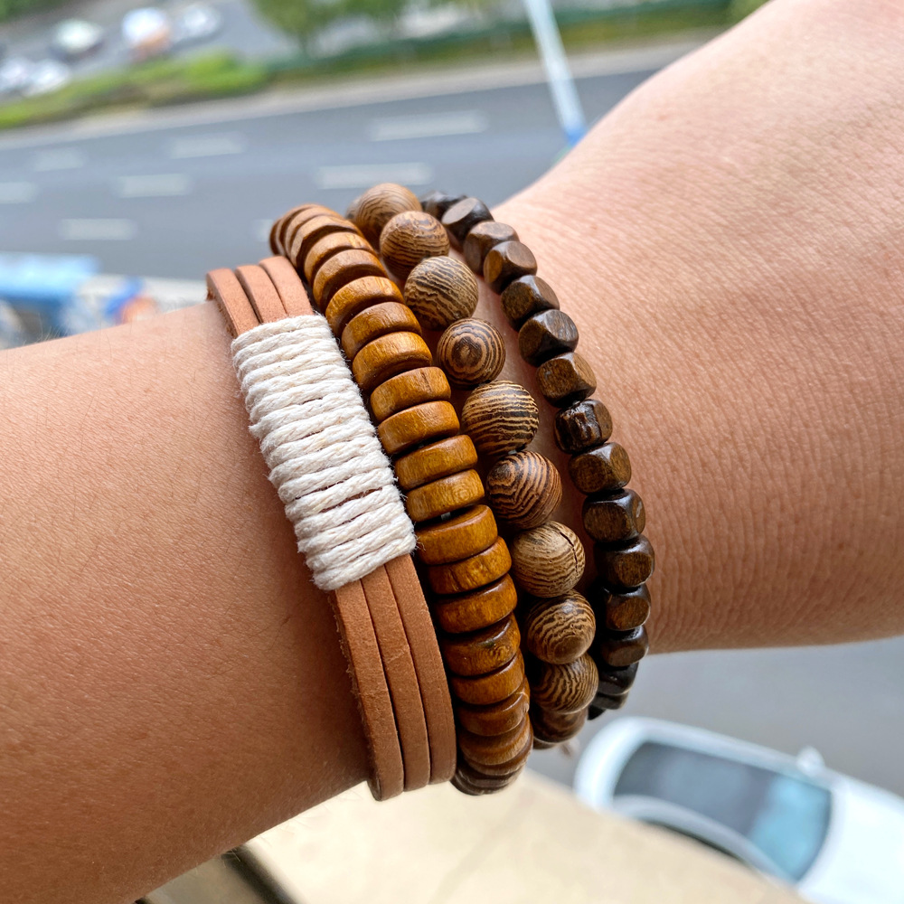 madera Pulsera, con Cuero de PU & Cordón de cera & aleación de zinc, hecho a mano, multicapa & unisexo & diferentes estilos para la opción, longitud:aproximado 7.5 Inch, Vendido por Set