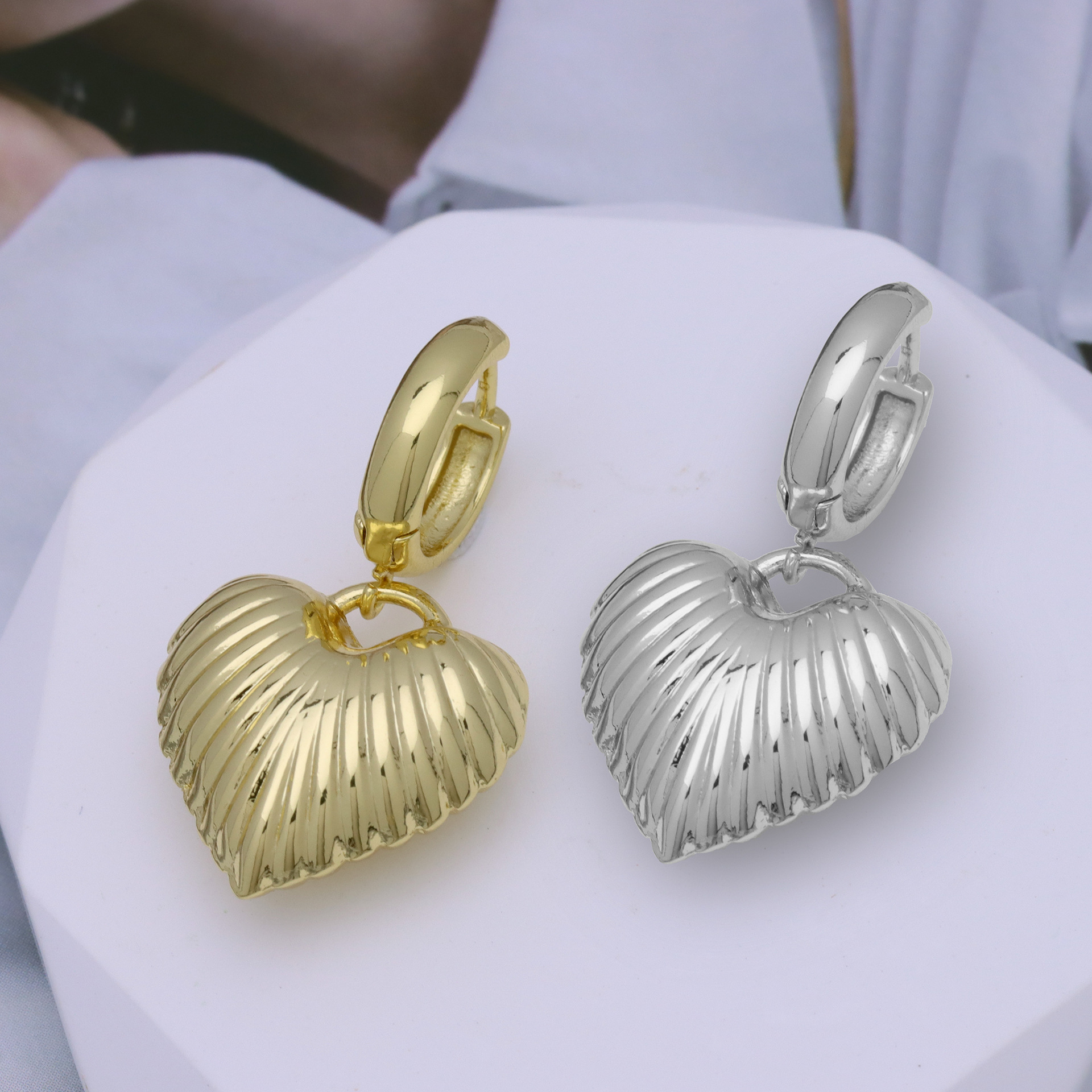 metal Huggie Pendiente aro de la gota, Corazón, chapado en color dorado, para mujer, más colores para la opción, Vendido por Par