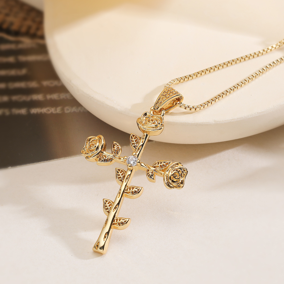 metal collar, con 5cm extender cadena, Cruces, chapado en color dorado, diferentes estilos para la opción & micro arcilla de zirconia cúbica & para mujer, longitud:aproximado 45 cm, Vendido por UD