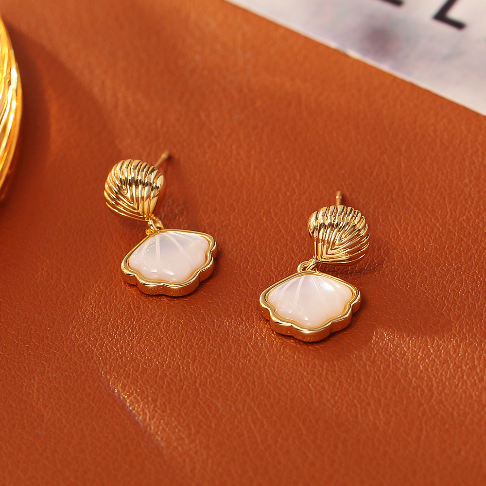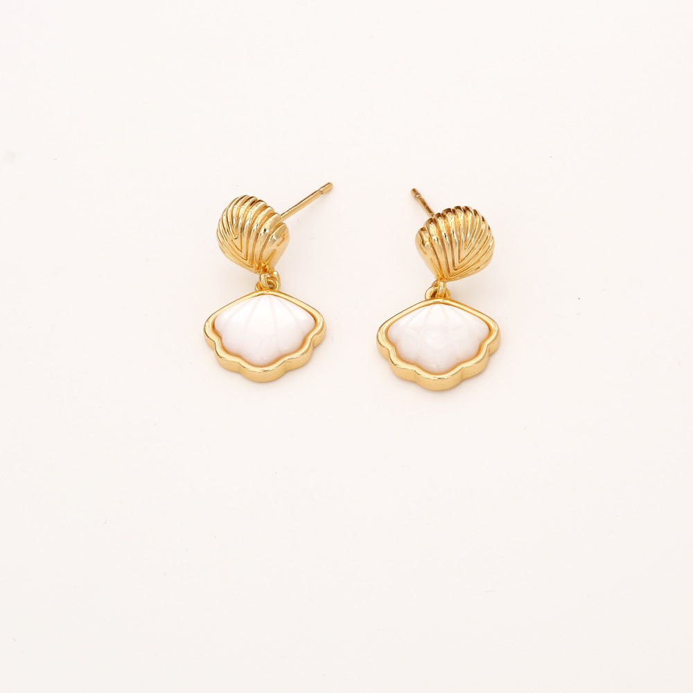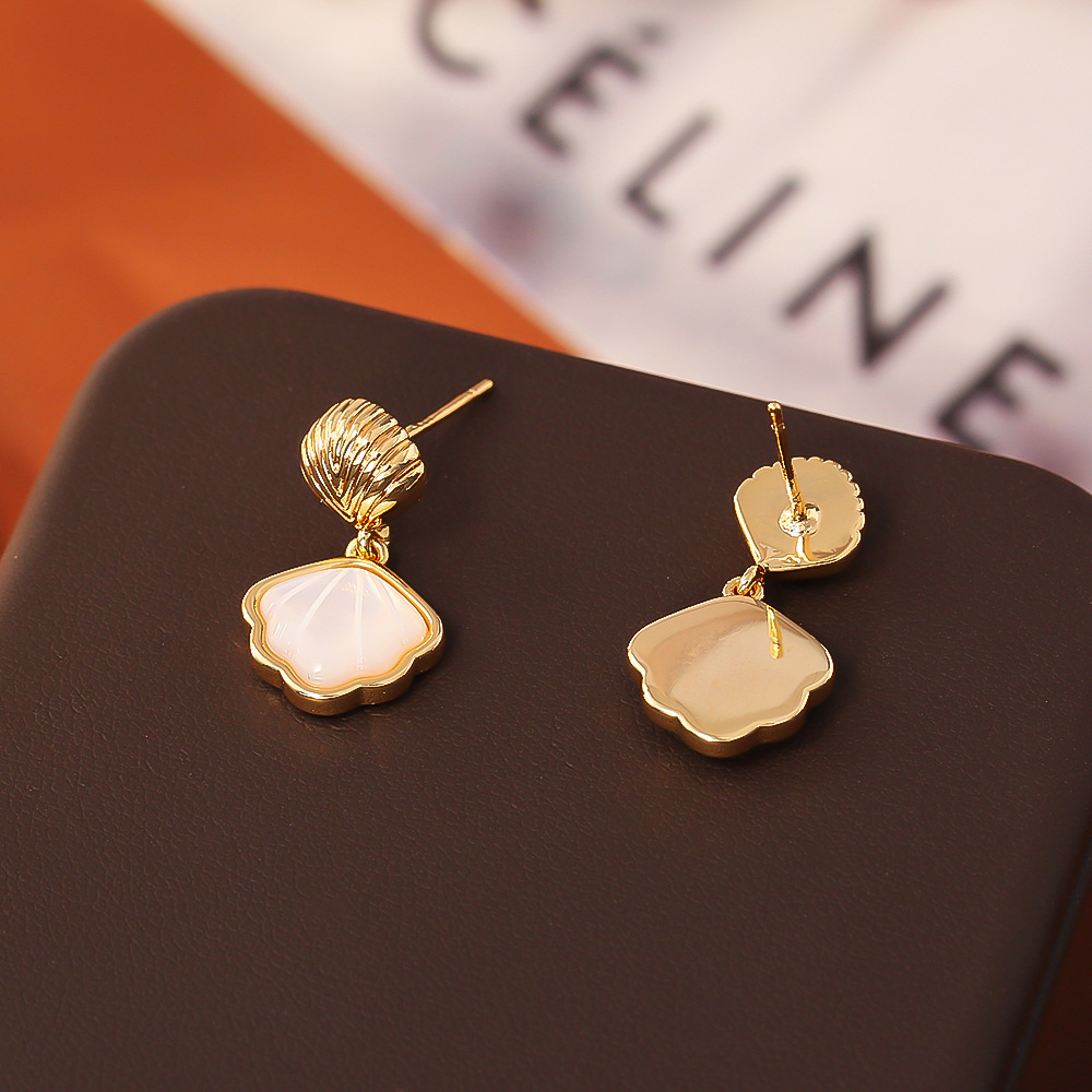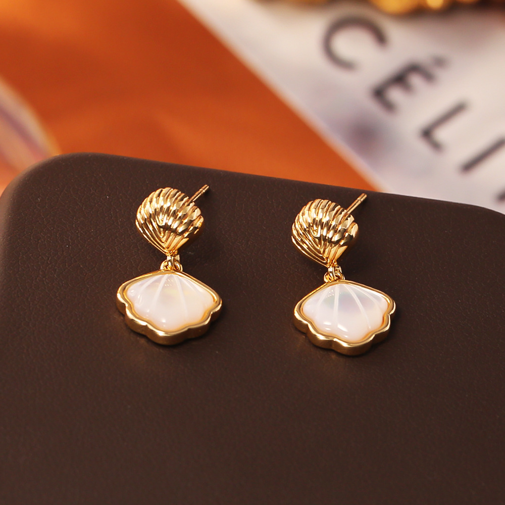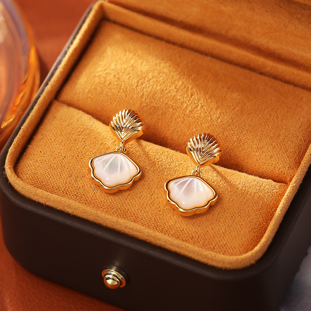 pendiente de gota colgando de latón, metal, con Ostra Perla, hoja del Ginkgo, chapado en oro real, Joyería & para mujer, Vendido por Par