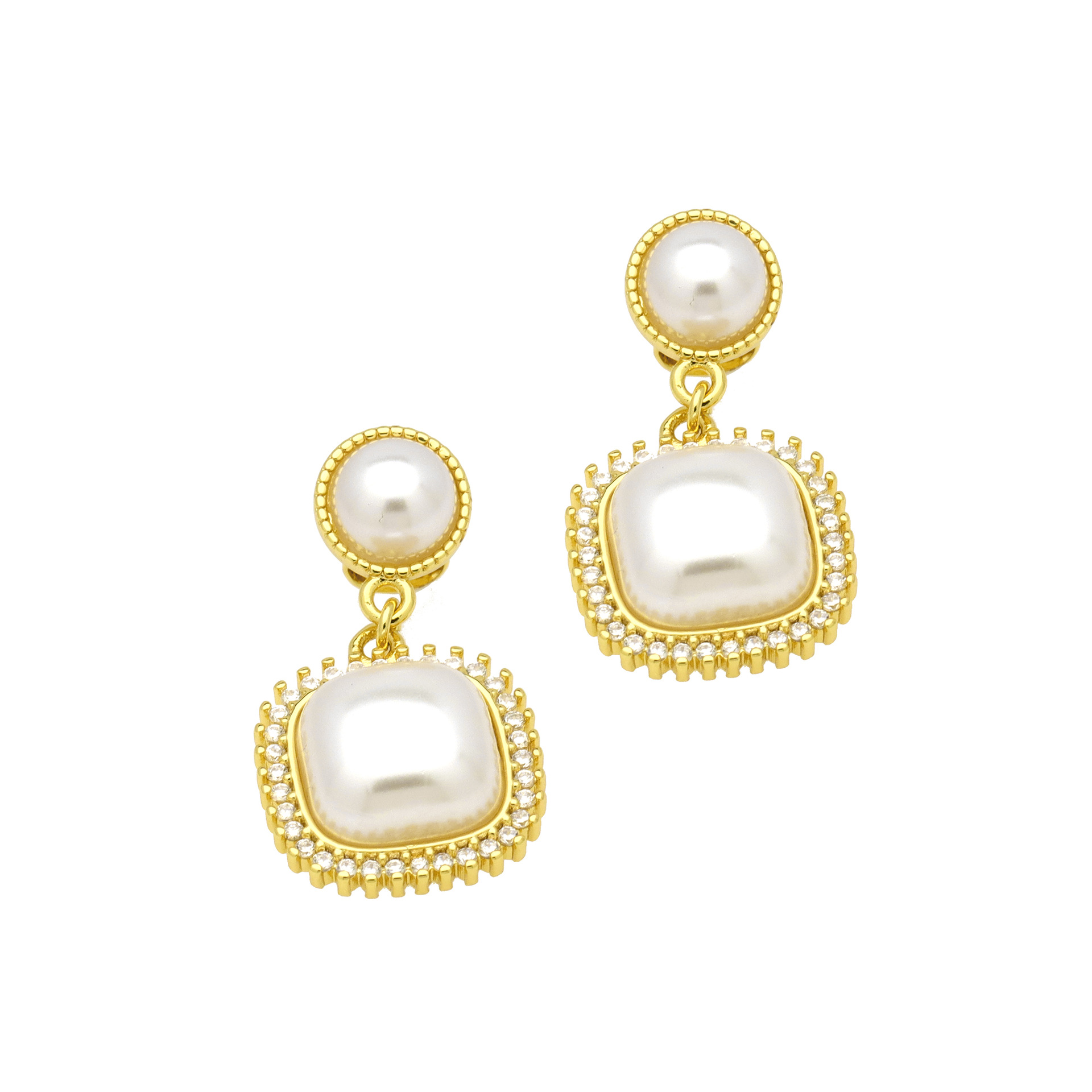 pendiente de gota colgando de latón, metal, con Perlas plásticas, chapado en color dorado, diferentes estilos para la opción & micro arcilla de zirconia cúbica & para mujer, más colores para la opción, Vendido por Par