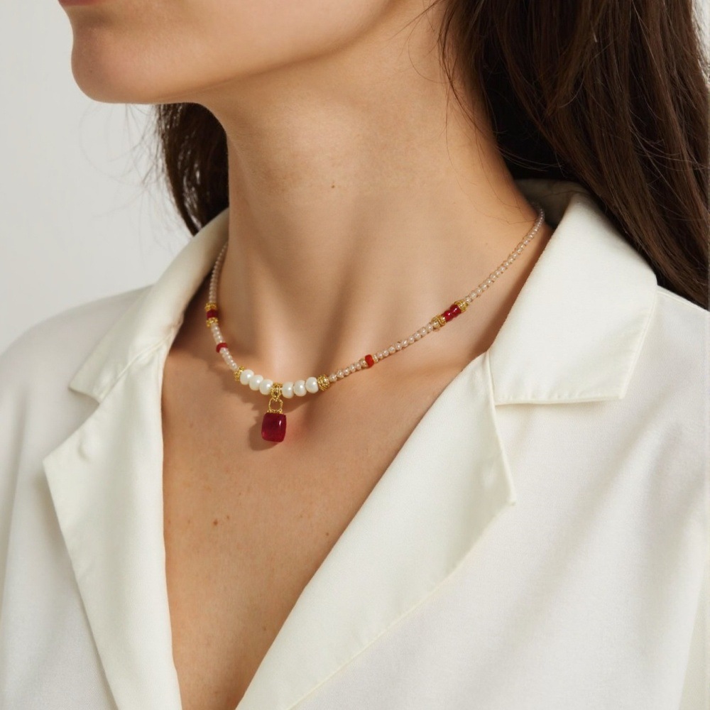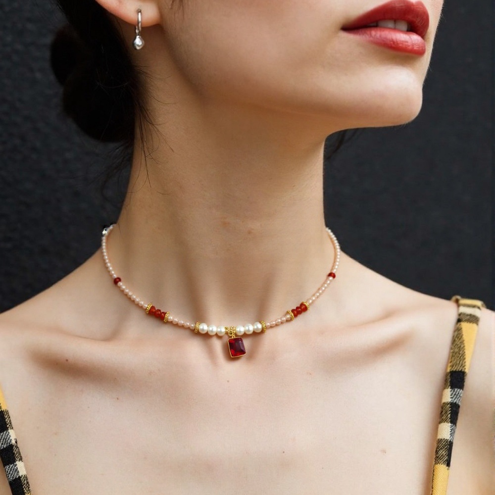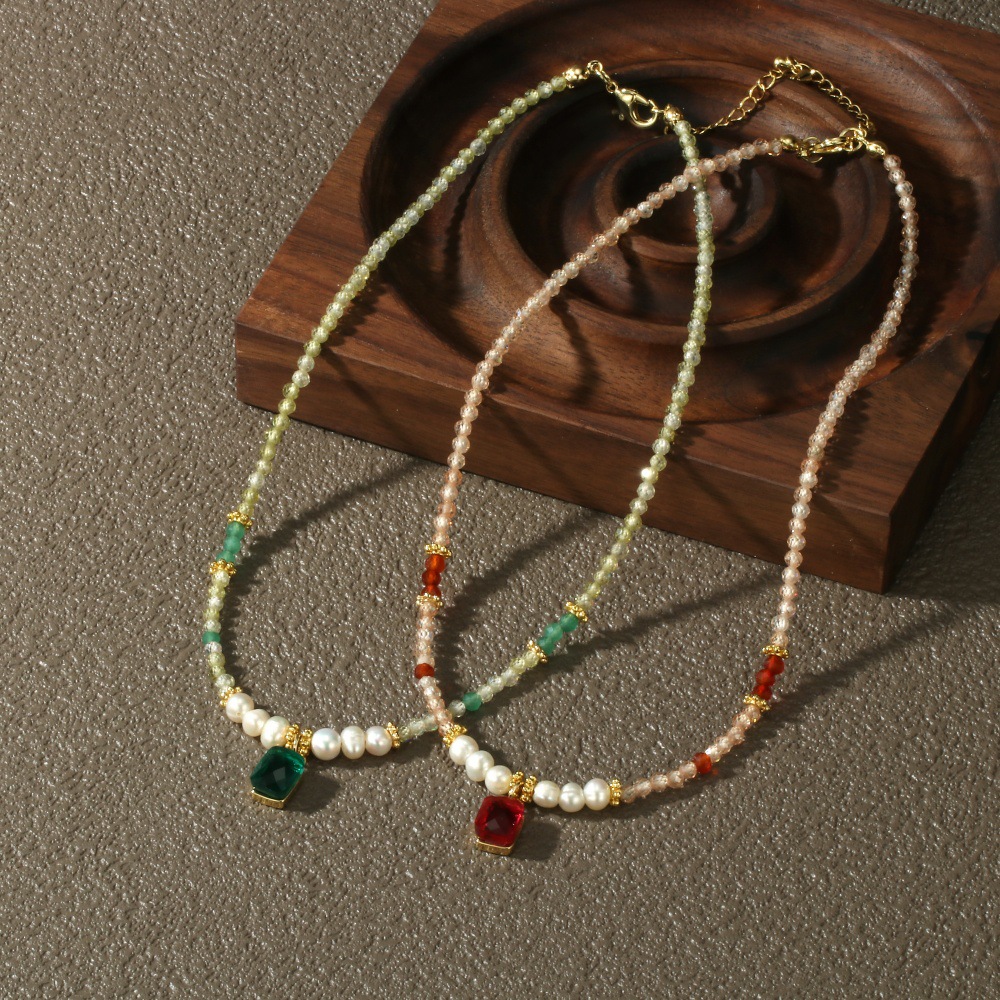 Piedras preciosas collar, con Perlas cultivadas de agua dulce & Cristal & metal, chapado, Joyería & diferentes estilos para la opción, más colores para la opción, Vendido por UD