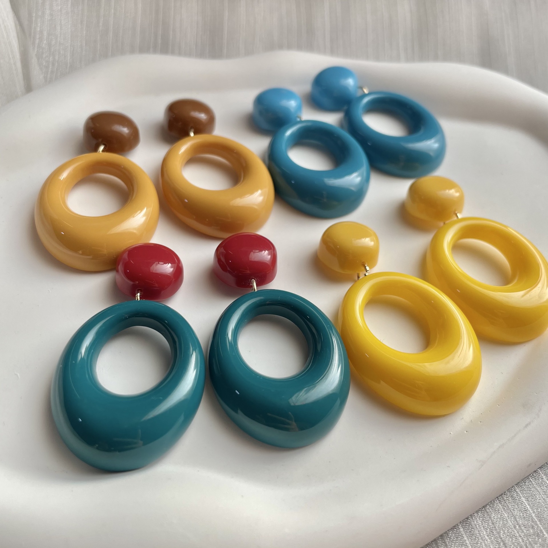 resina Pendientes con Colgantes, con aleación de zinc, Patrón Geométrico, para mujer & hueco, más colores para la opción, 30x50mm, Vendido por Par