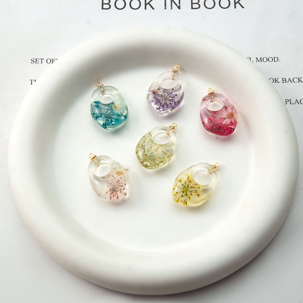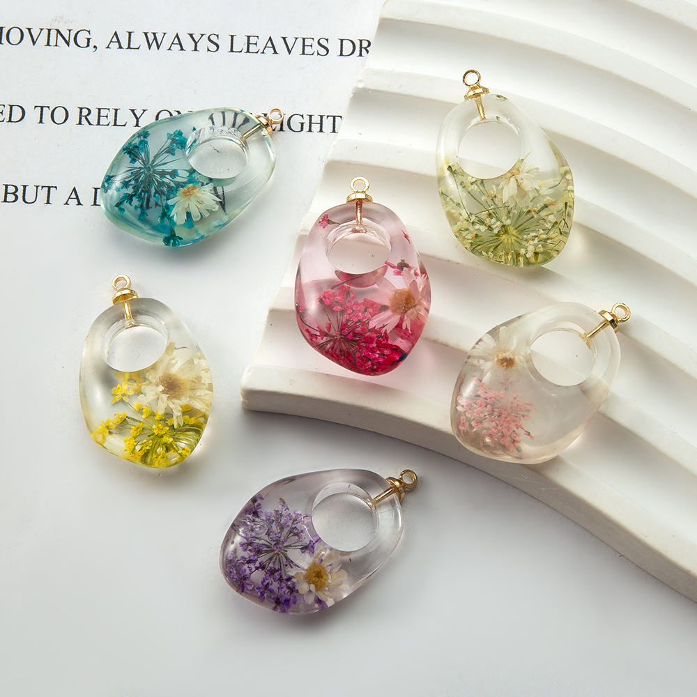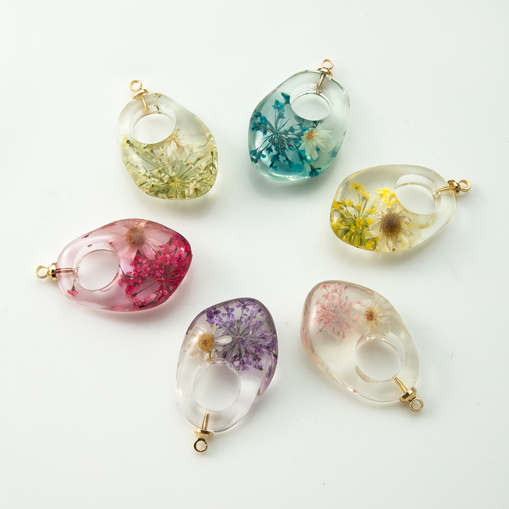 resina colgante, con Flores secas & metal, chapado, Bricolaje, más colores para la opción, 19.2x8.2x31.6mm, Vendido por UD