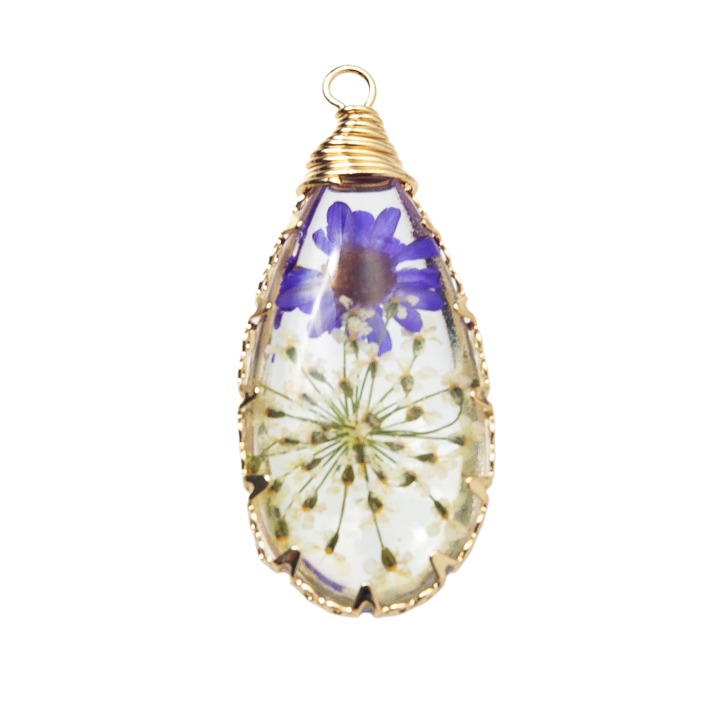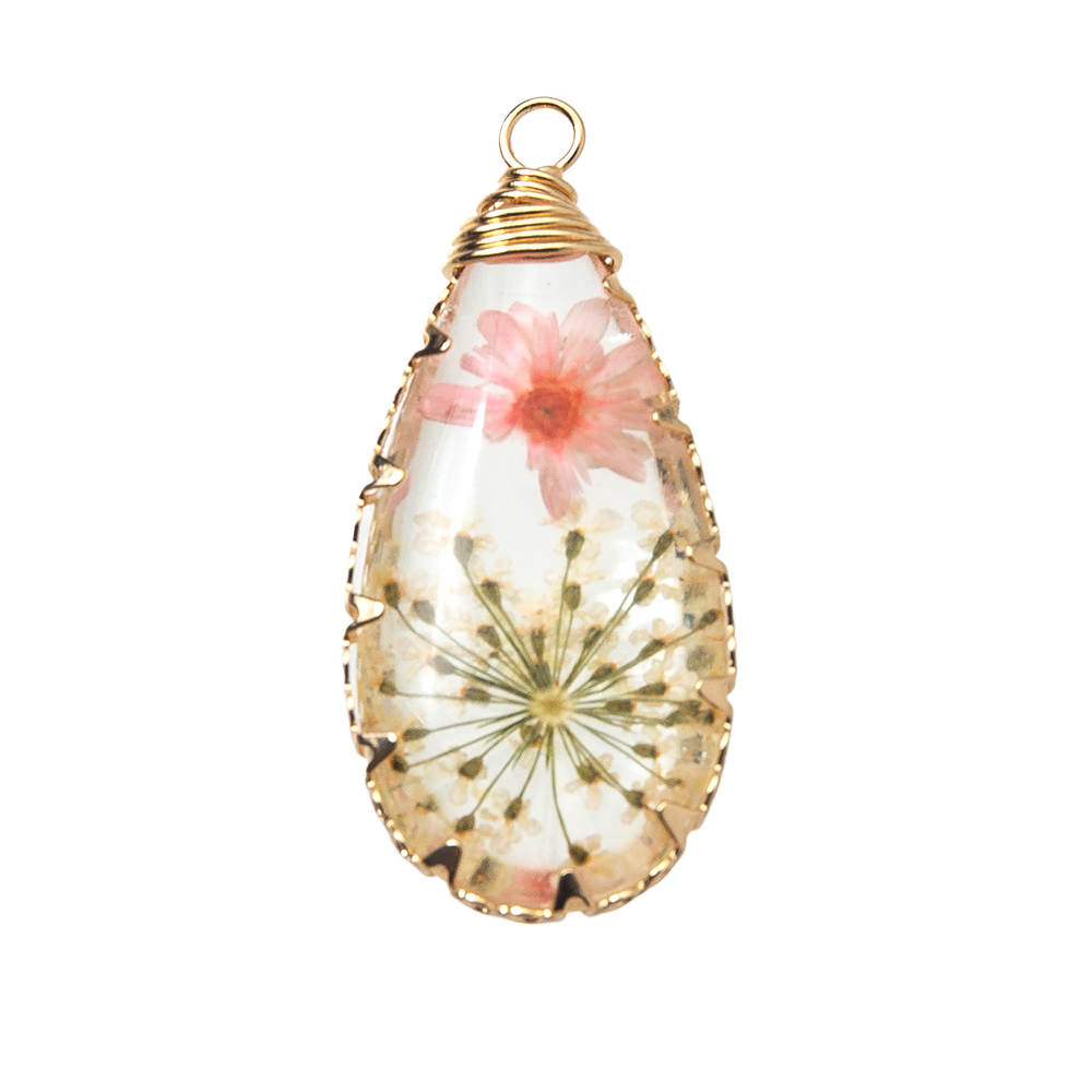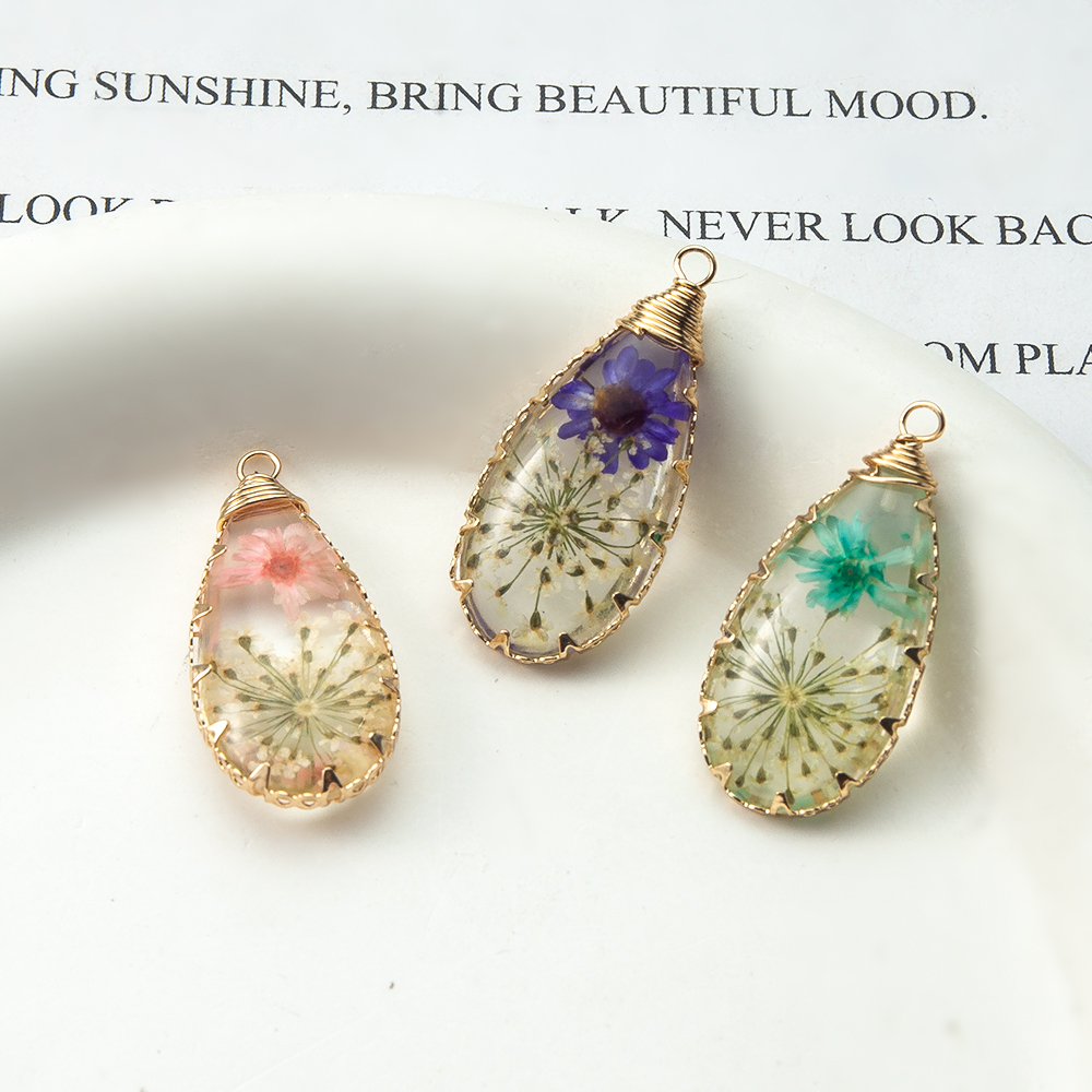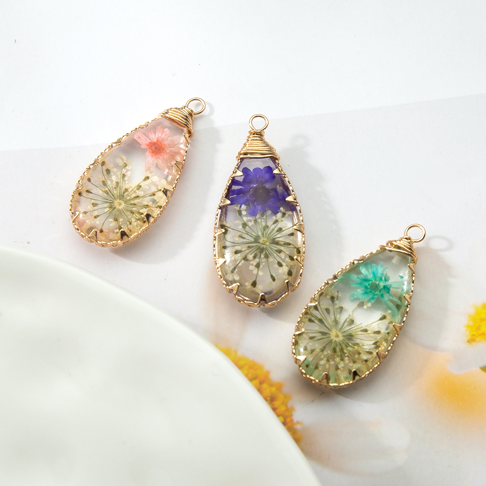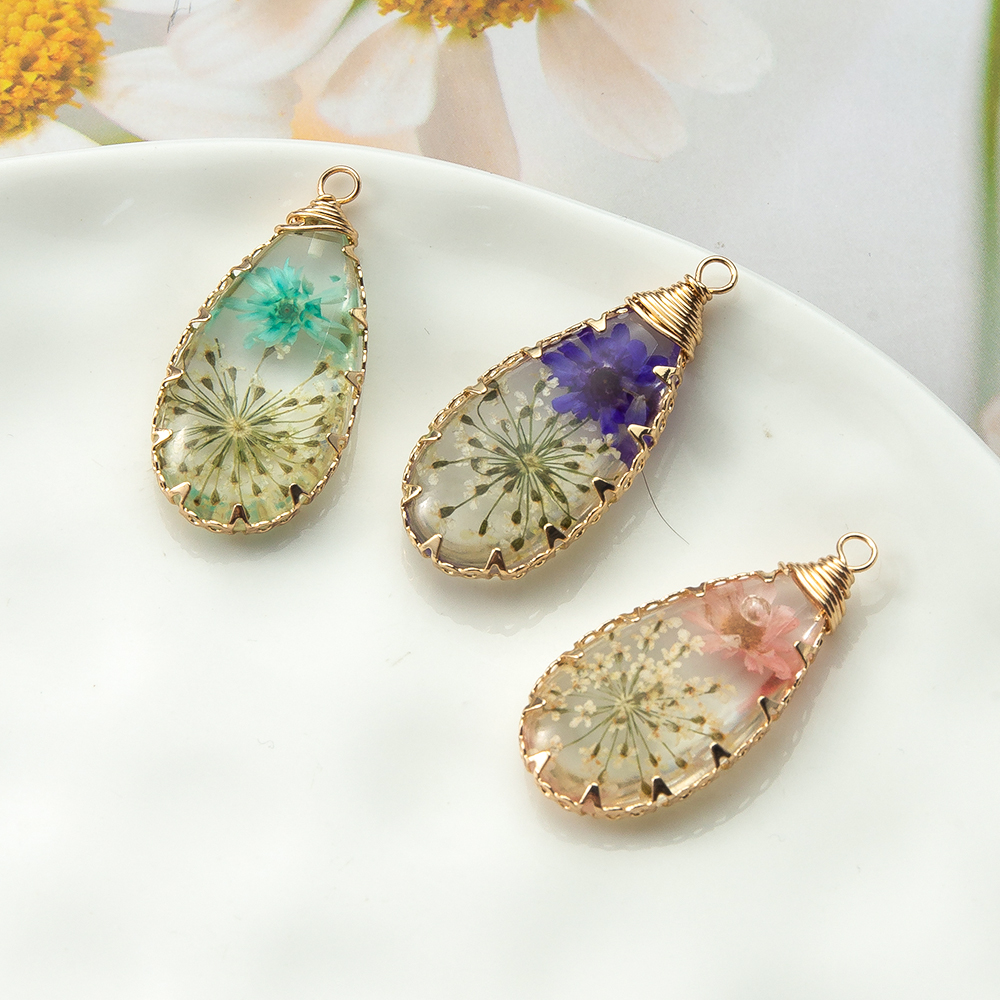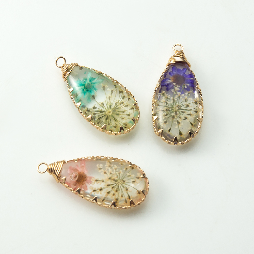 resina colgante, con Flores secas & metal, chapado, Bricolaje, más colores para la opción, 15x7x32.6mm, Vendido por UD