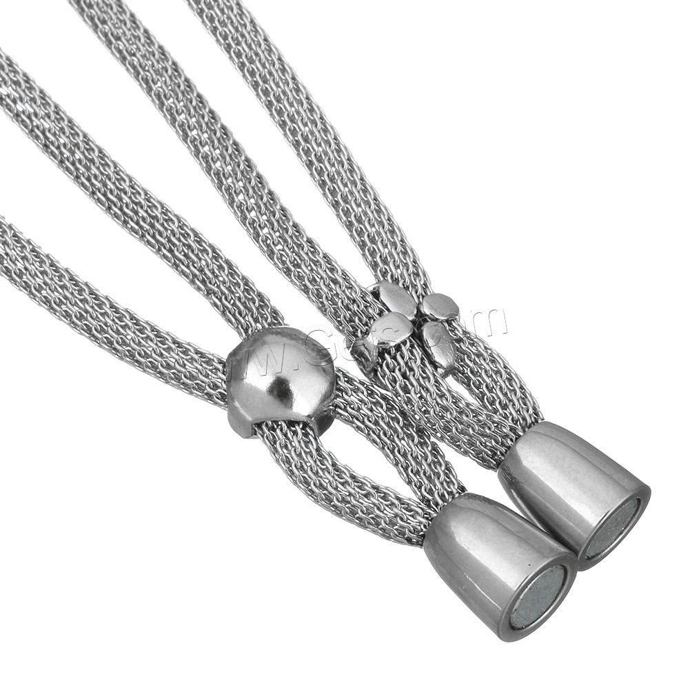 Bracelet Tube maille, Fil cordon nette en filet de plastique, avec argile & strass de résine, Alliage de zinc fermoir magnétique, Placage de couleur platine, plus de couleurs à choisir, 7mm Environ 7.5 pouce, Vendu par brin