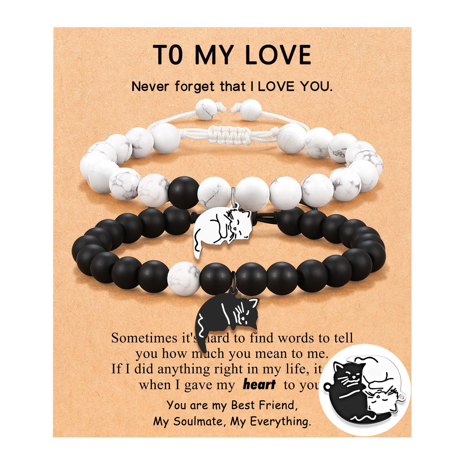 Abrazine Stone Set de bracelet, avec Magnésite & cordon de polyester & Acier inoxydable 304, fait à la main, styles différents pour le choix & pour le couple, Longueur:Environ 6-10 pouce, Vendu par fixé