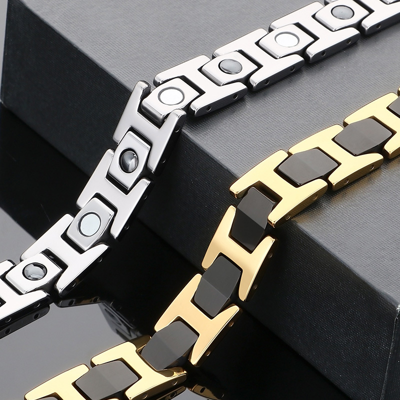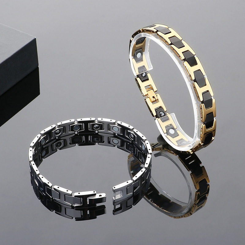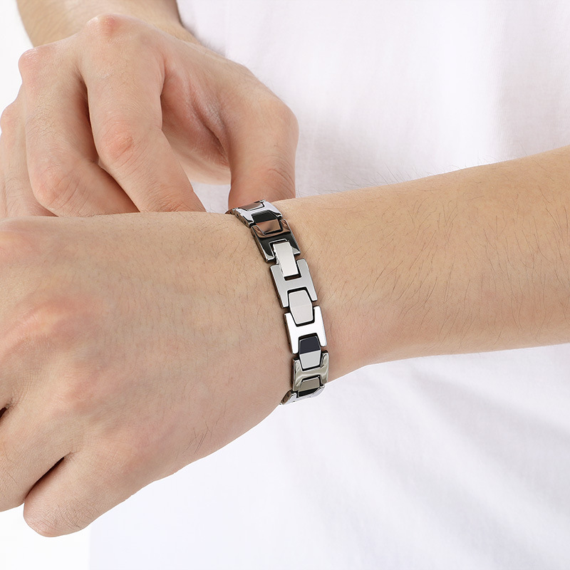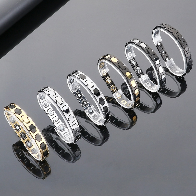 Acier de tungstène bracelet, avec Pierre de Noir-Magnetic, Placage, bijoux de mode & pour homme, plus de couleurs à choisir, Longueur:Environ 8.5 pouce, Vendu par PC