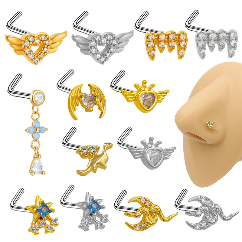 Acier inoxydable 304 Bijoux de Piercing de Nez, avec cristal, Placage, unisexe & styles différents pour le choix & pavé de micro zircon, Vendu par PC