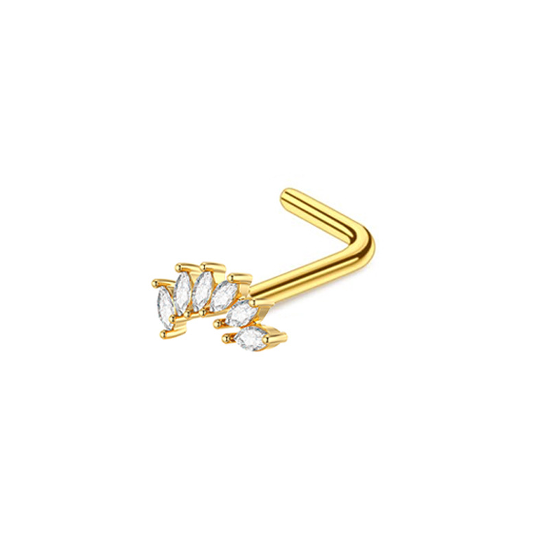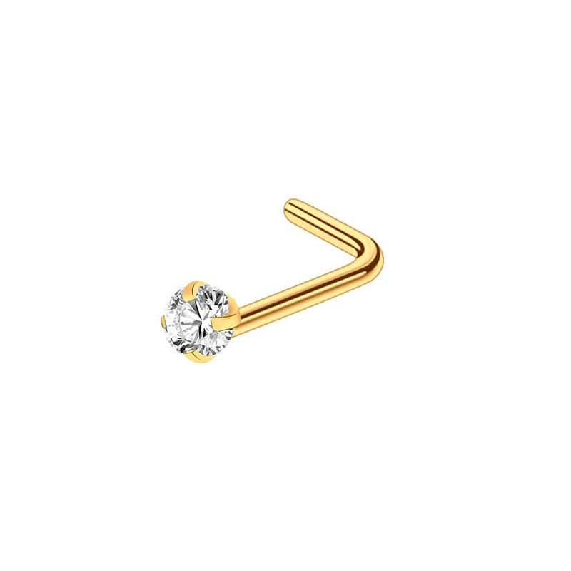 Acier inoxydable 304 Bijoux de Piercing de Nez, Placage de couleur d'or, unisexe & styles différents pour le choix & pavé de micro zircon, 7x0.8mm, Vendu par PC