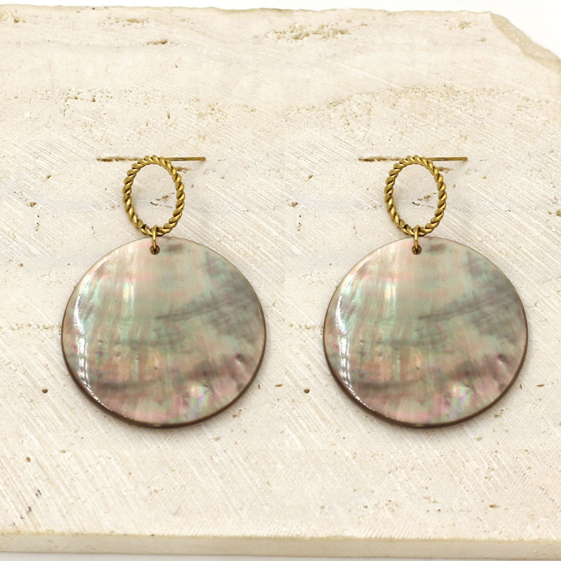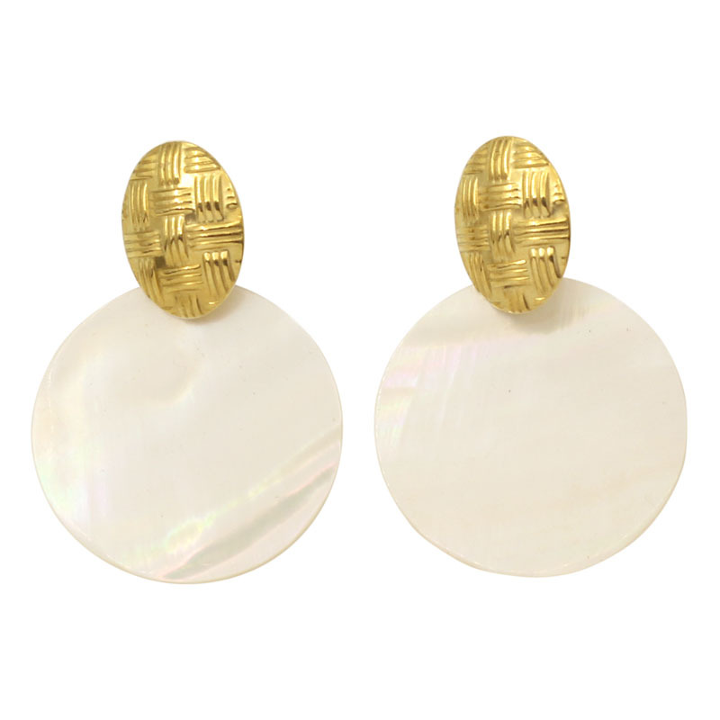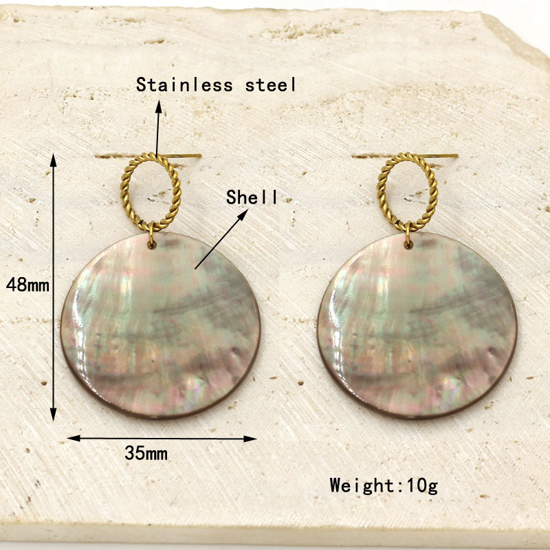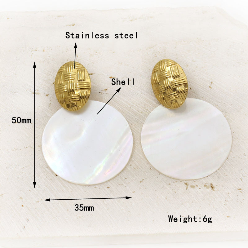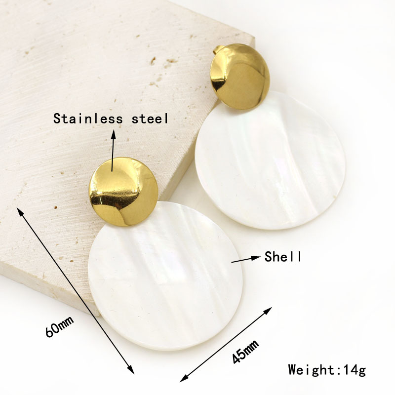 Acier inoxydable 304 Boucle d'oreille goutte, avec coquille, Placage de couleur d'or, bijoux de mode, plus de couleurs à choisir, Vendu par paire