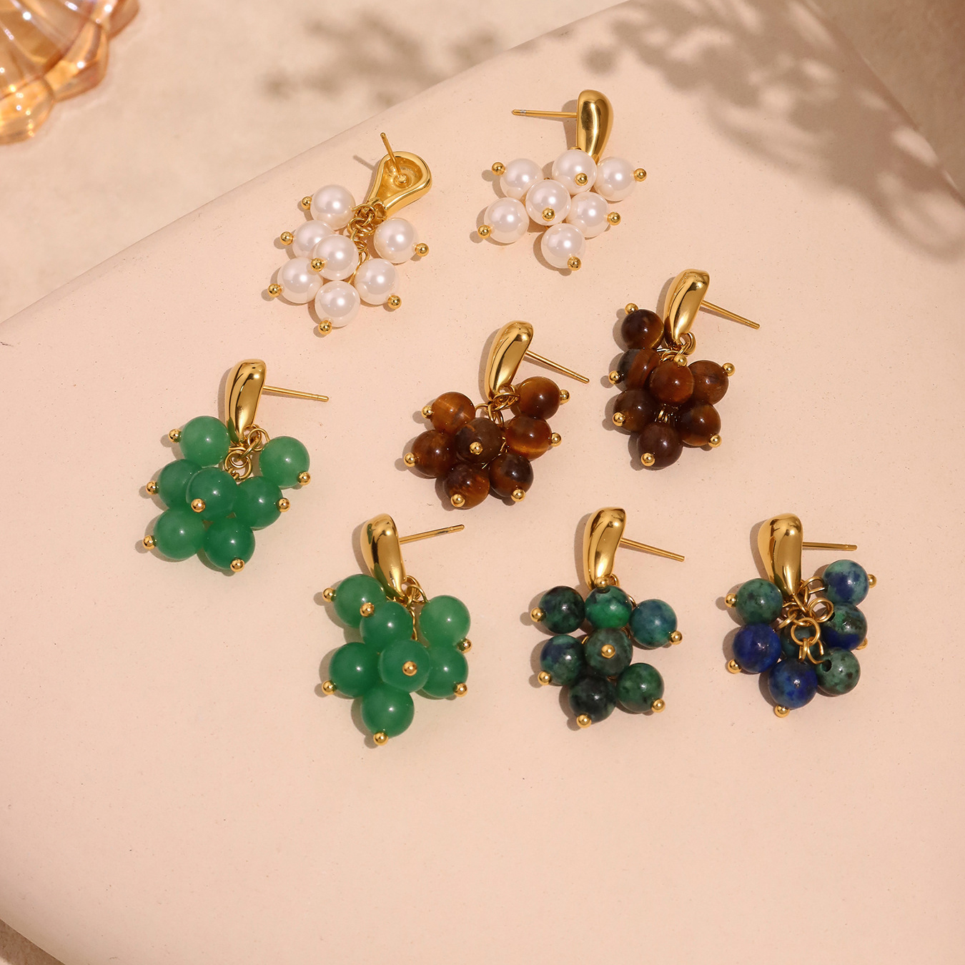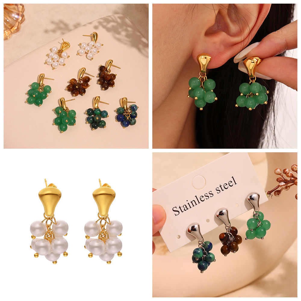 Acier inoxydable 304 Boucle d'oreille goutte, avec coquille blanche, raisin, Placage, bijoux de mode & différents matériaux pour le choix & pour femme, plus de couleurs à choisir, Vendu par paire