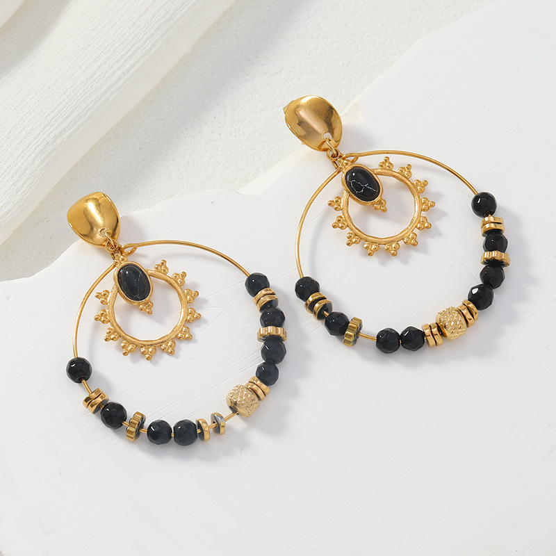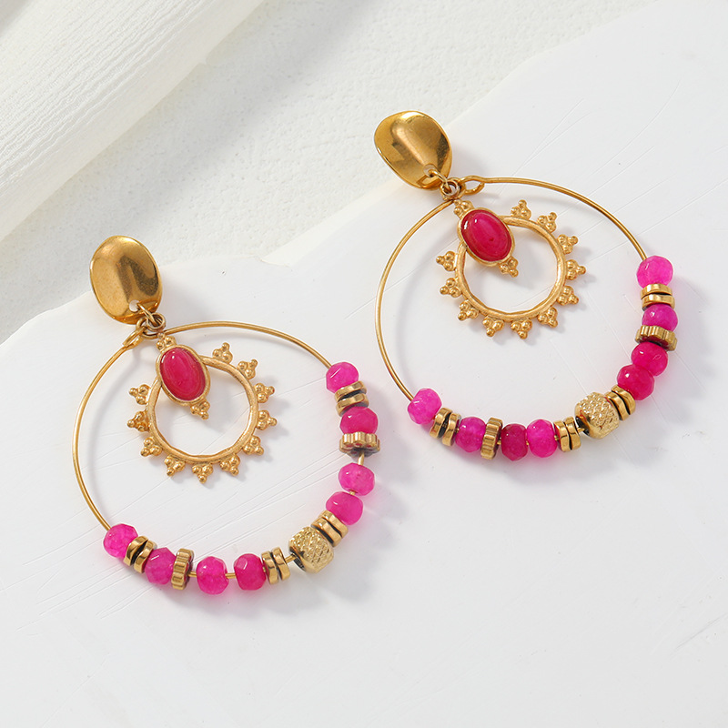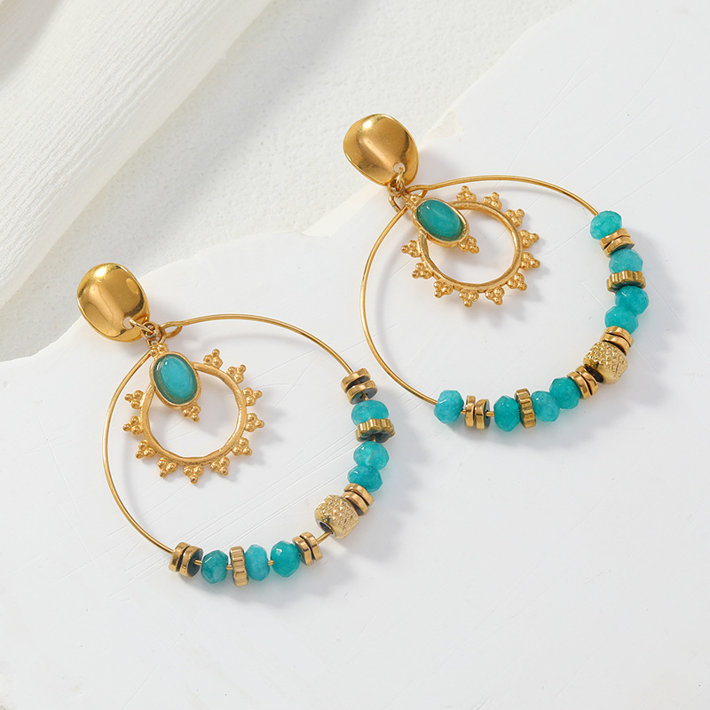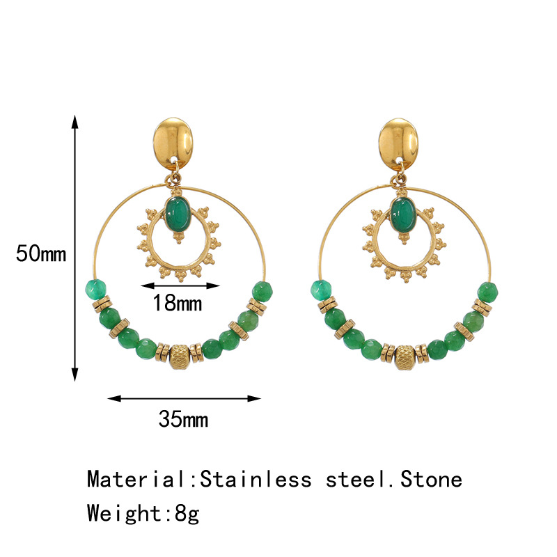 Acier inoxydable 304 Boucle d'oreille goutte, avec Pierre naturelle, Placage de couleur d'or, bijoux de mode, plus de couleurs à choisir, Vendu par paire