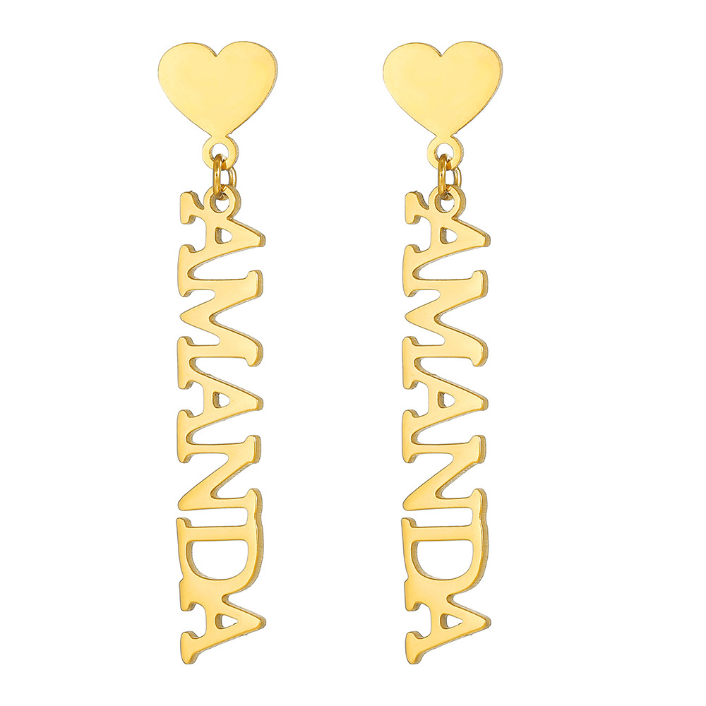 Acier inoxydable 304 Boucle d'oreille goutte, Lettre d’alphabet, Placage, bijoux de mode & pour femme, plus de couleurs à choisir, 7.3x50mm, Vendu par paire