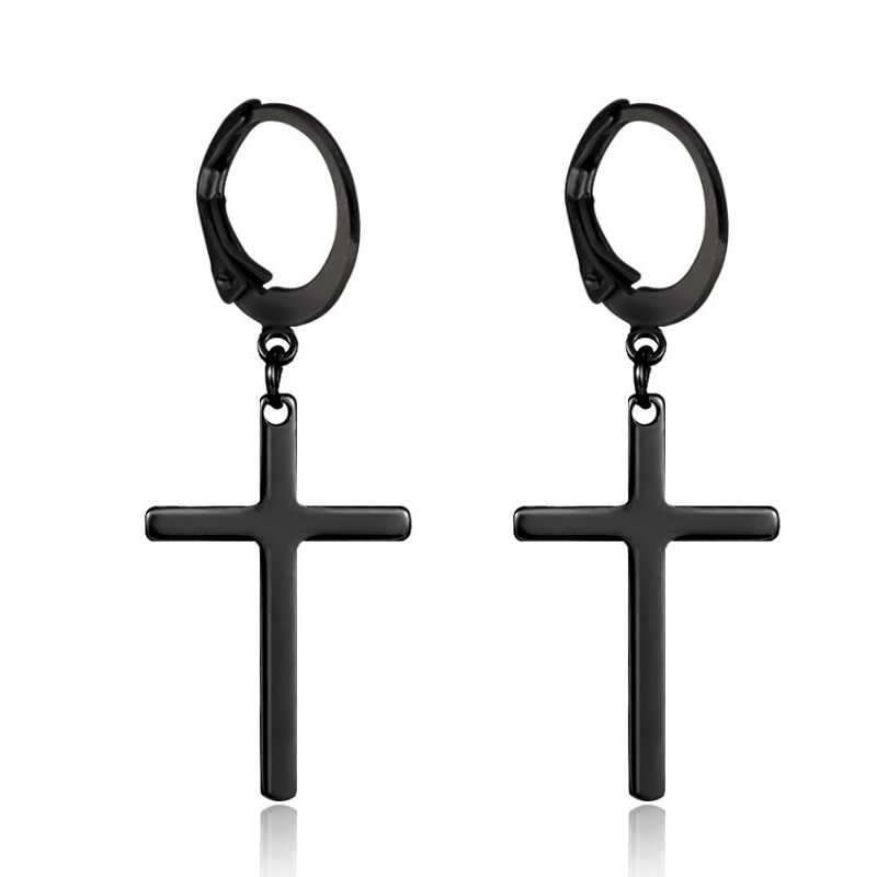 Acier inoxydable 304 Boucle d'oreille goutte, croix, Placage, bijoux de mode & unisexe, plus de couleurs à choisir, 15x40mm, Vendu par PC