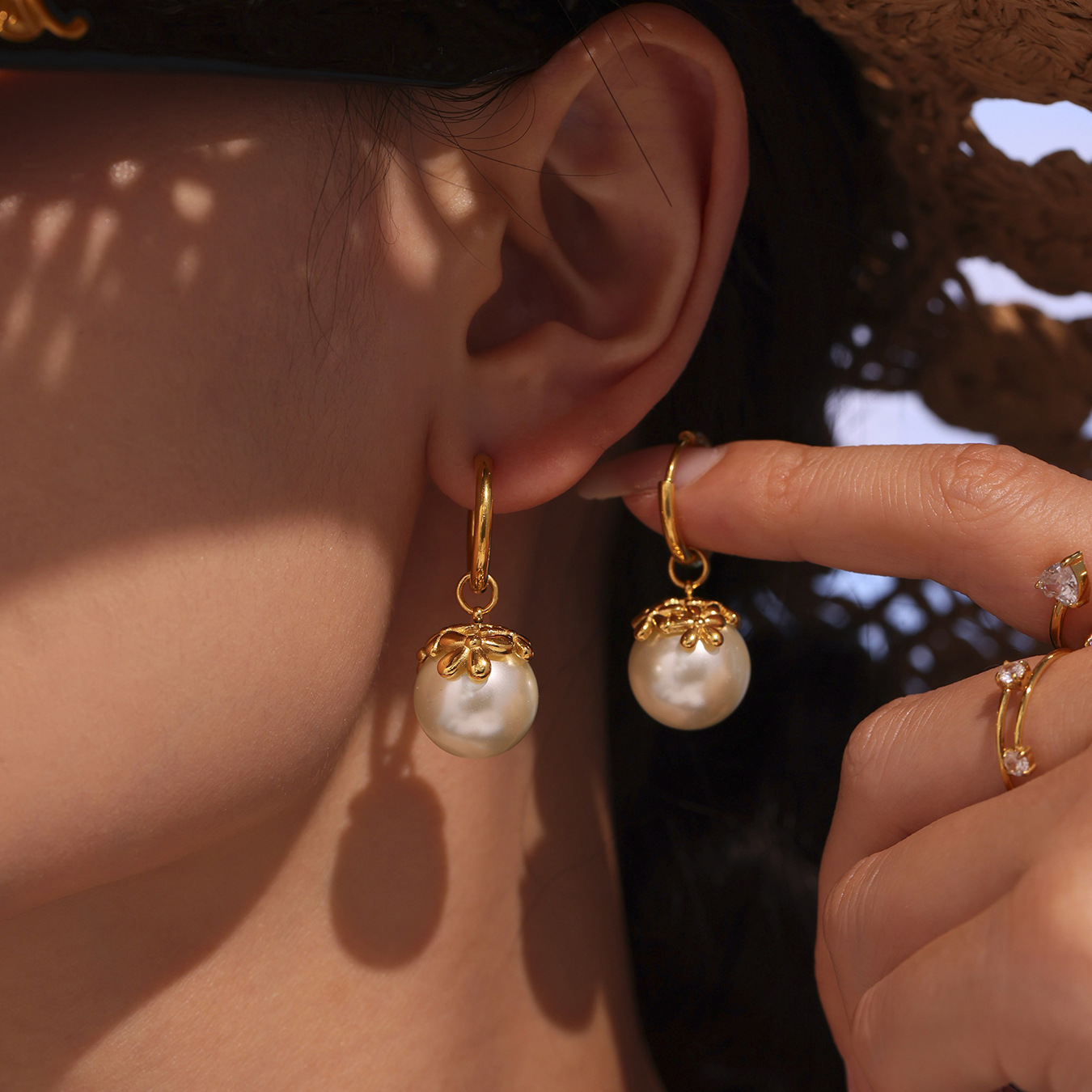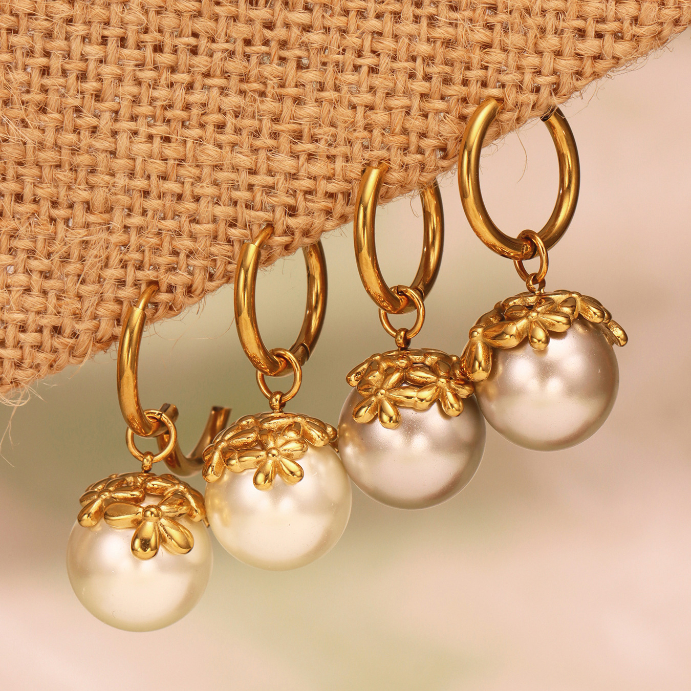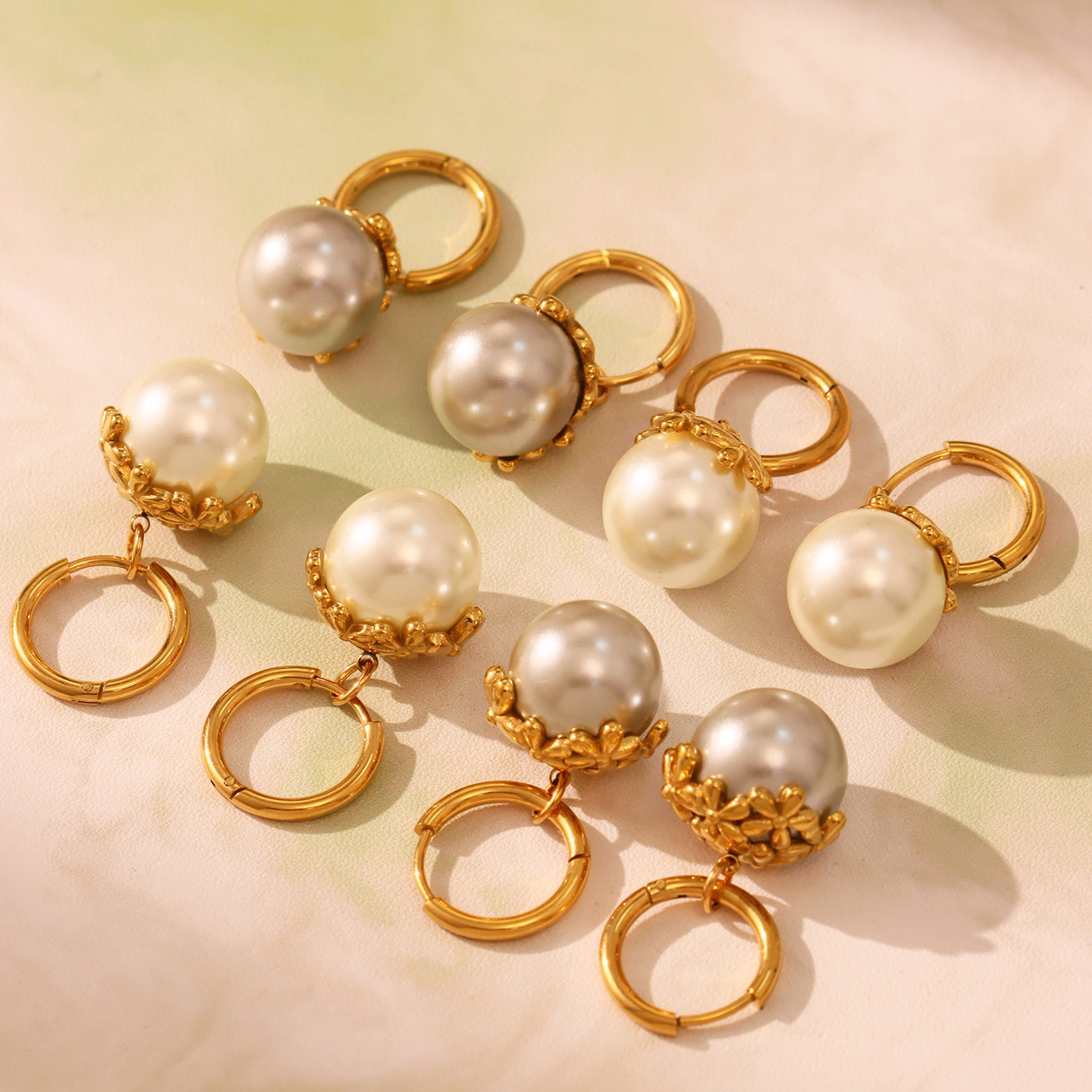 Acier inoxydable 304 Boucle d'oreille goutte, avec Shell Pearl, Plaqué or 18K, bijoux de mode & pour femme, plus de couleurs à choisir, Vendu par paire