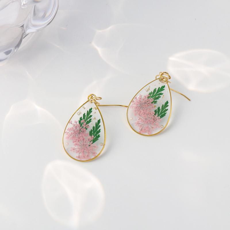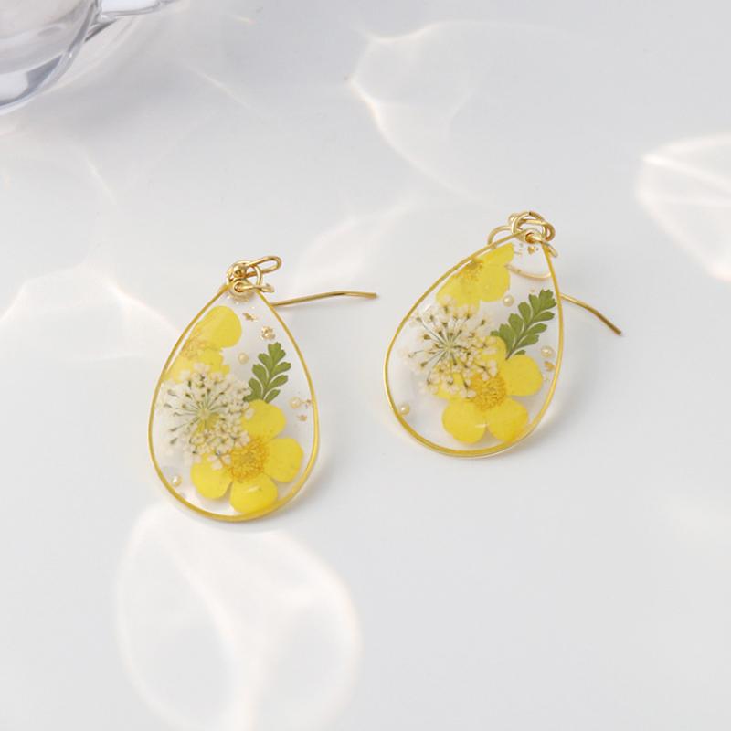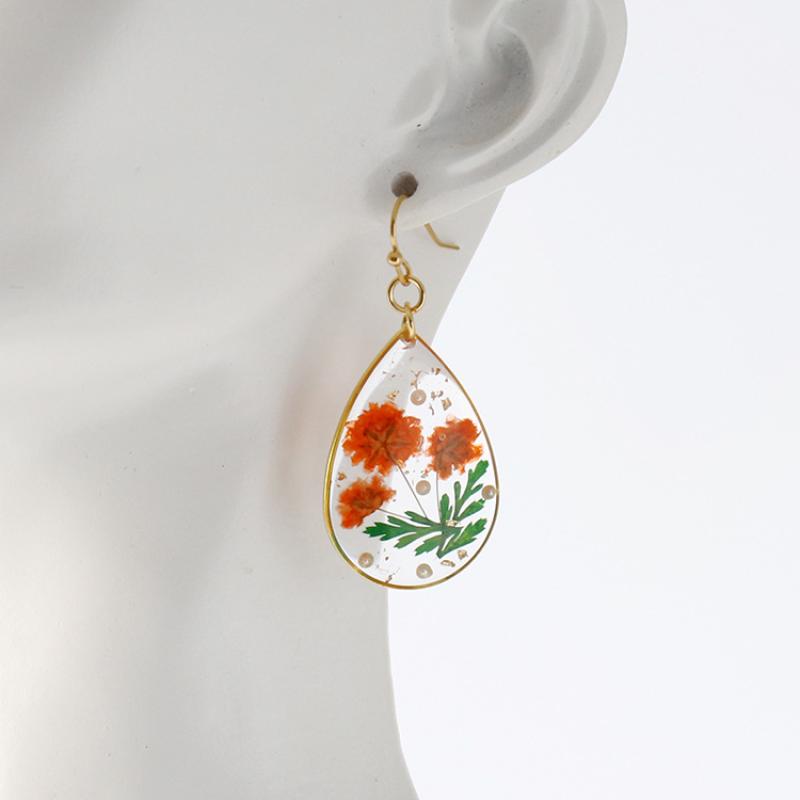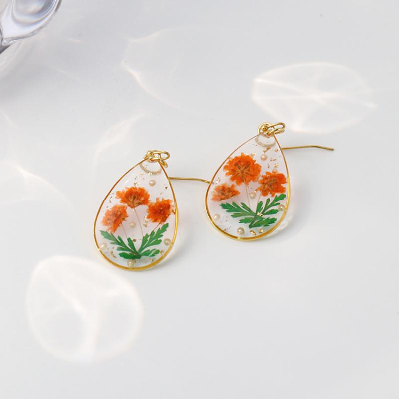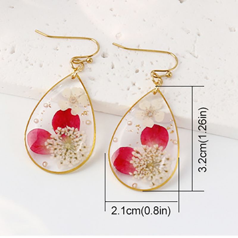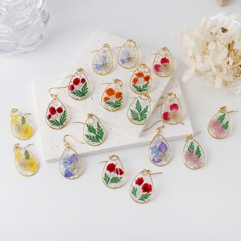Acier inoxydable 304 Boucle d'oreille goutte, avec Fleurs séchées & résine & laiton, larme, goutté d'époxy, bijoux de mode & modèles différents pour le choix & pour femme, doré, 6pairescouple/sac, Vendu par sac