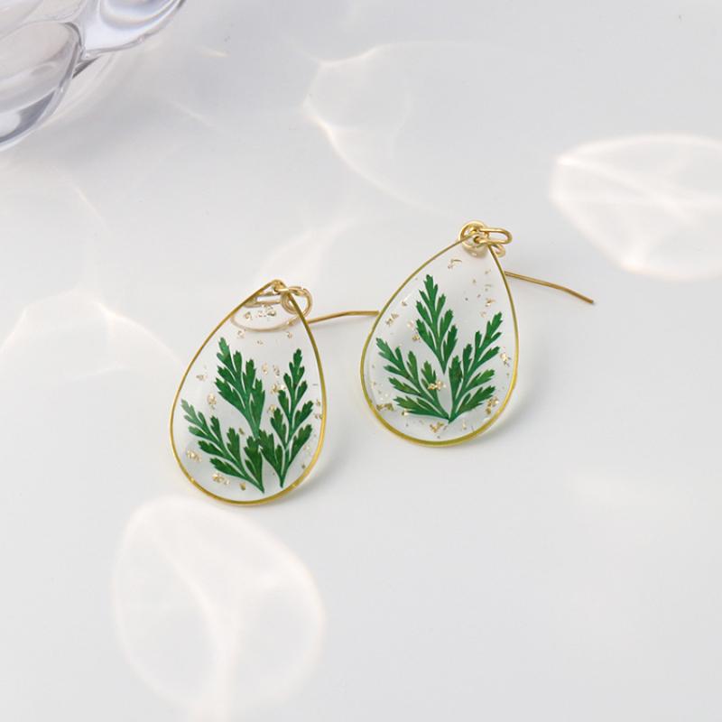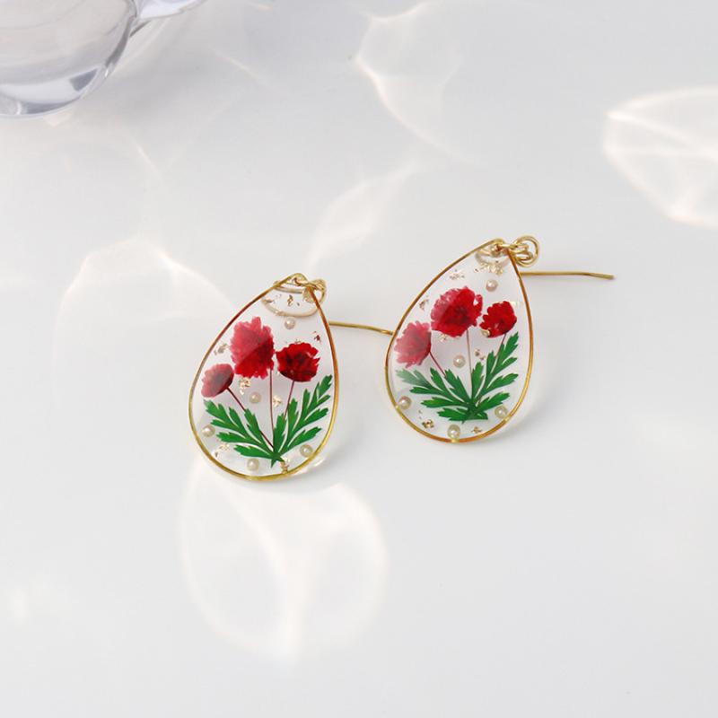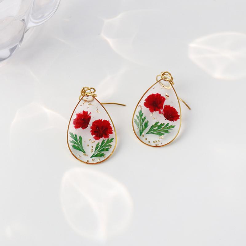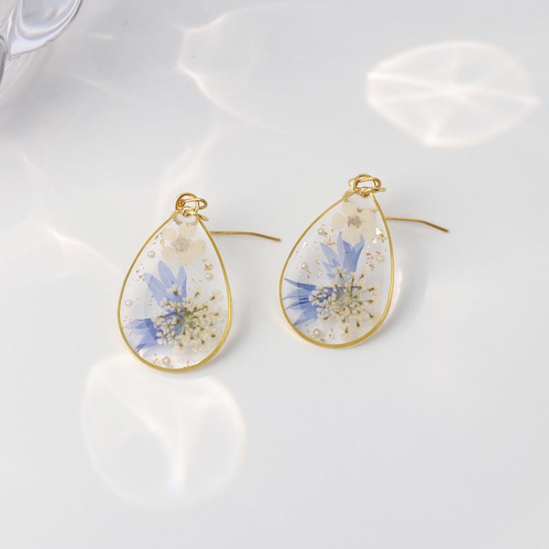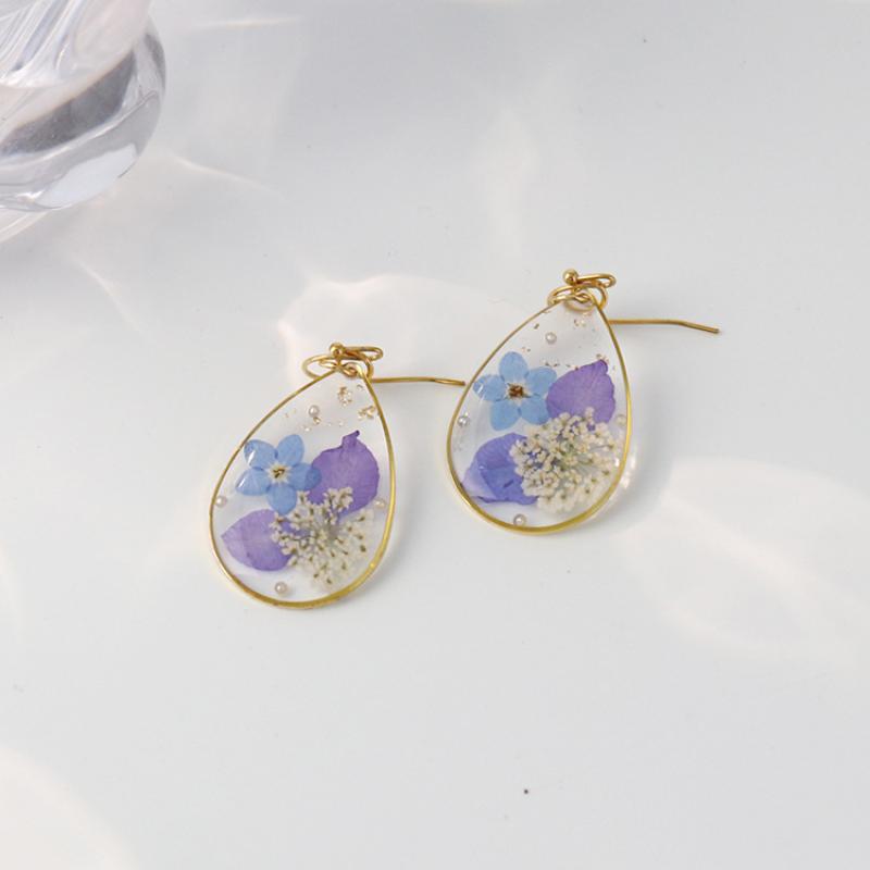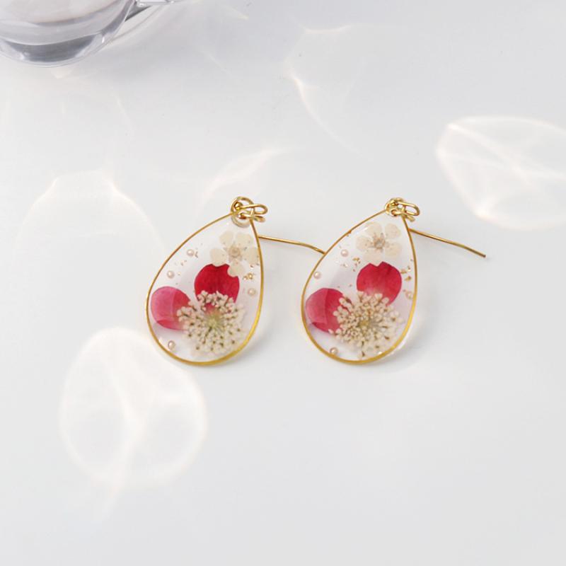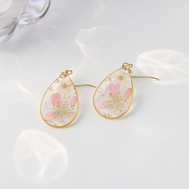 Acier inoxydable 304 Boucle d'oreille goutte, avec Fleurs séchées & résine & laiton, larme, goutté d'époxy, bijoux de mode & modèles différents pour le choix & pour femme, doré, 6pairescouple/sac, Vendu par sac