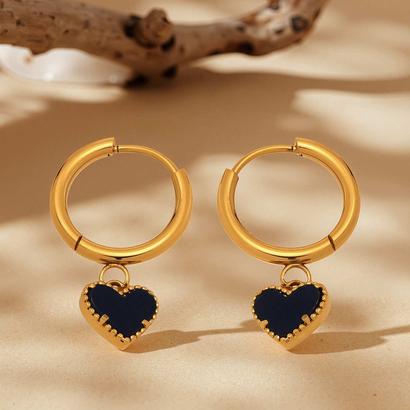 Acier inoxydable 304 Boucle d'oreille goutte, avec agate noire, coeur, Placage, bijoux de mode & pour femme, doré, Vendu par paire