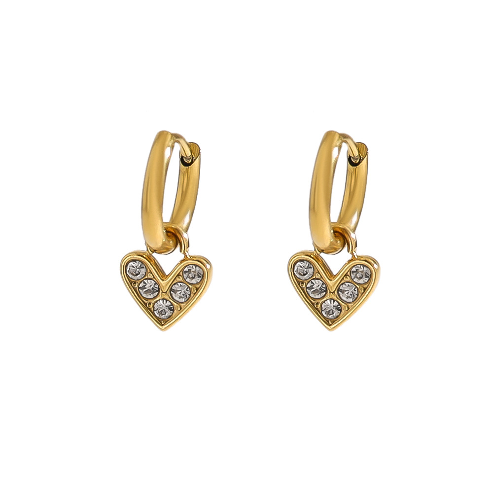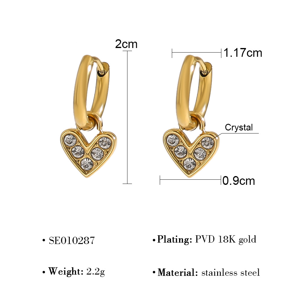 Boucle d'oreille goutte inox, acier inoxydable, avec strass, couleur originale  0.8mm, Vendu par paire