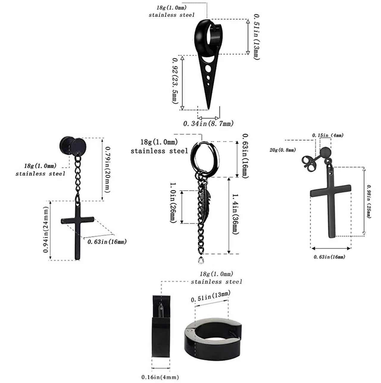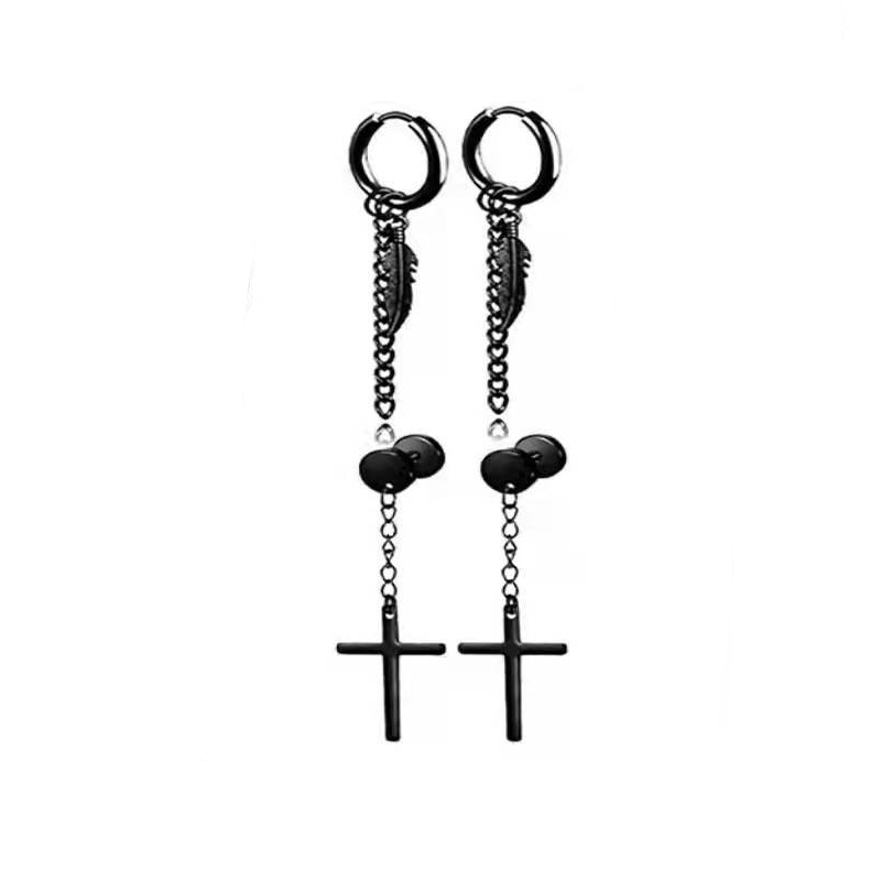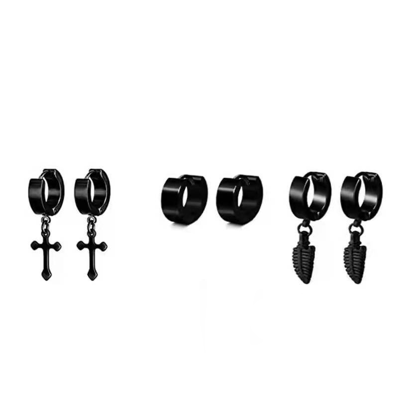 Acier inoxydable 304 Boucles d'oreilles, Placage, bijoux de mode & unisexe, noire, earring length 13-50mm, Vendu par fixé