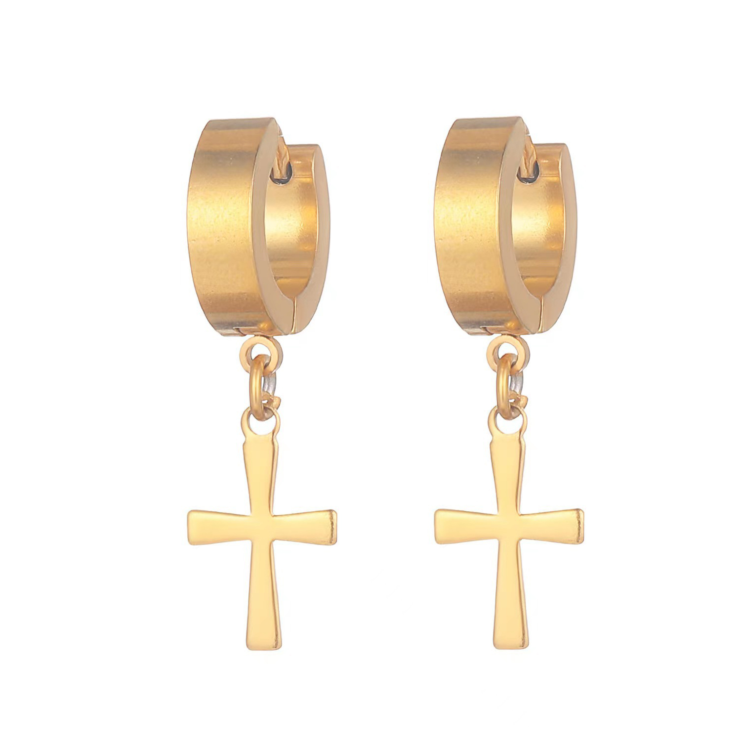 Acier inoxydable 304 Boucles d'oreilles pendantes Hoop Huggie, croix, Placage, bijoux de mode & unisexe, plus de couleurs à choisir, 14x30mm, Vendu par PC