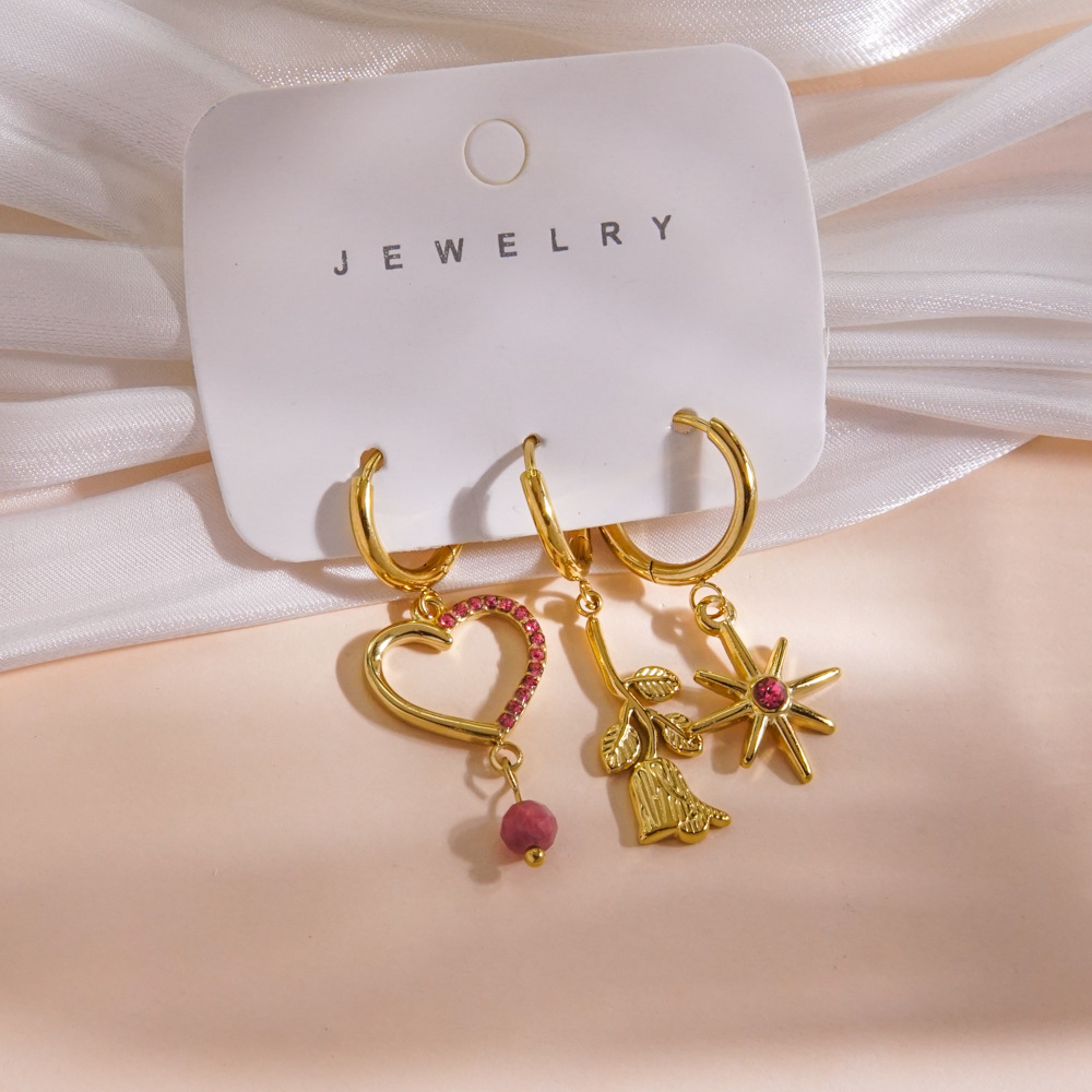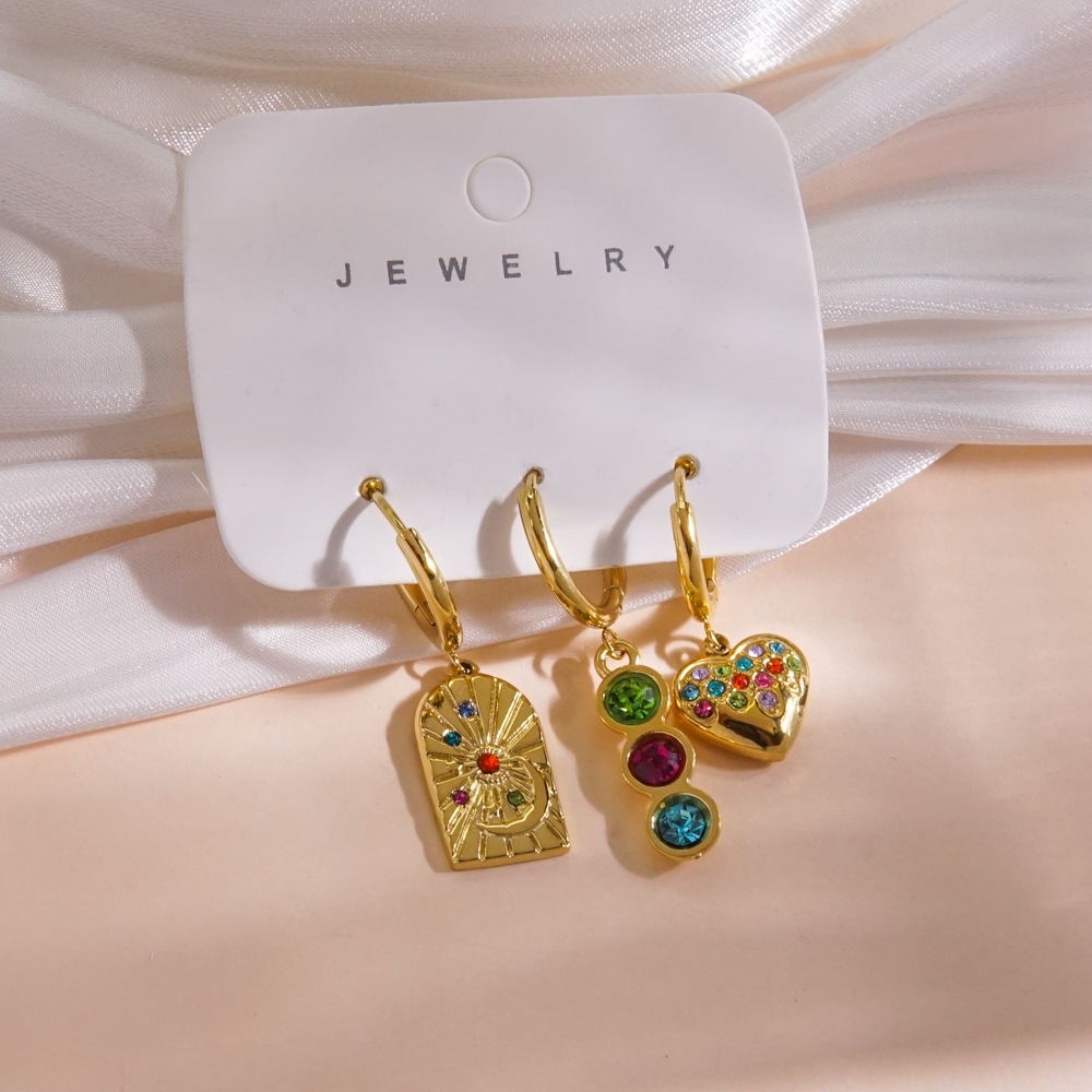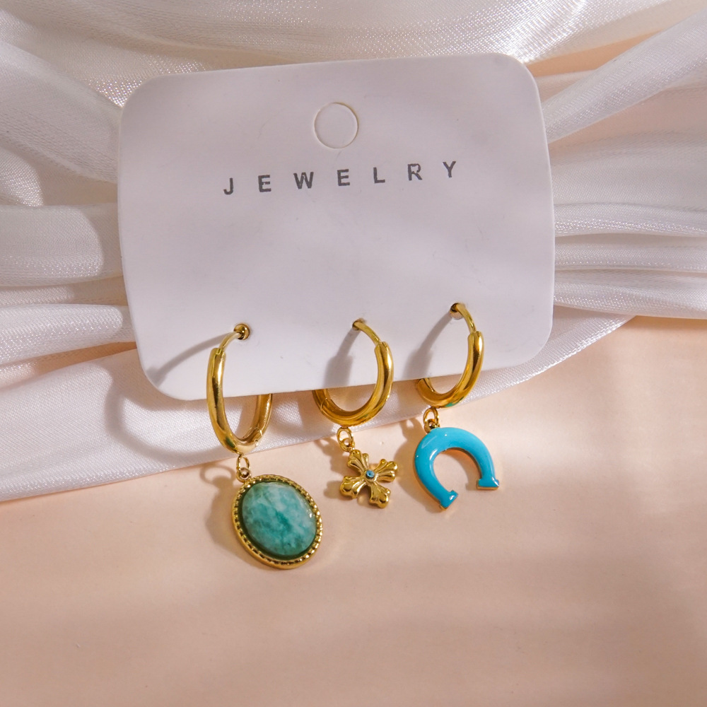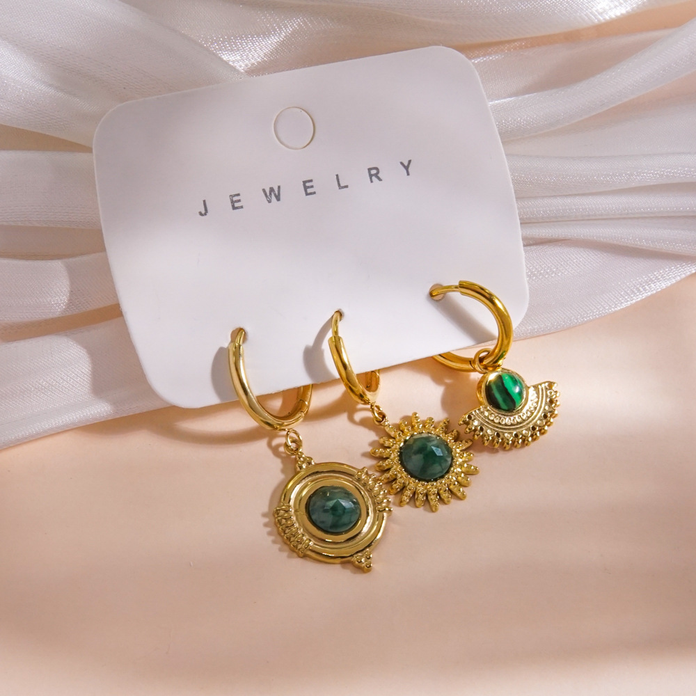 Acier inoxydable 304 Boucles d'oreilles, avec Pierre naturelle & coquille, Placage de couleur d'or, styles différents pour le choix & pavé de micro zircon & pour femme & émail, earring length 30-60mm, Vendu par fixé