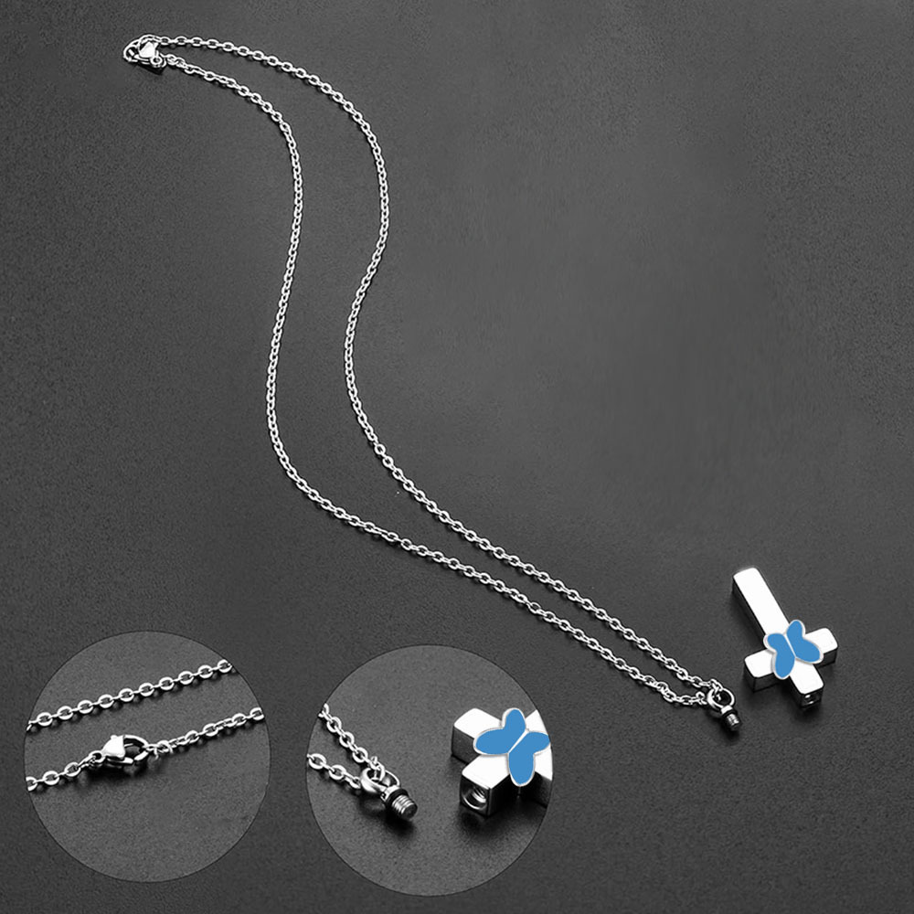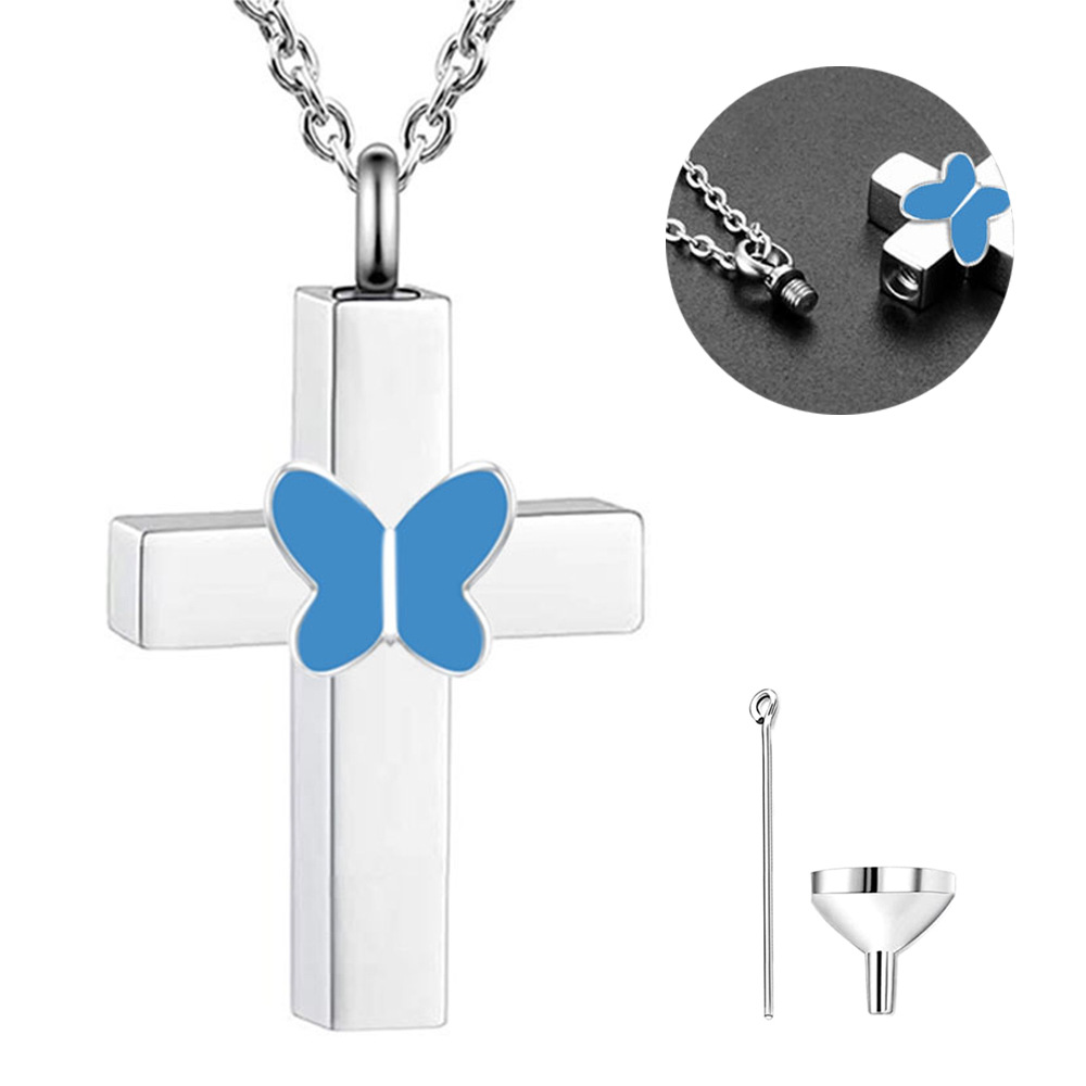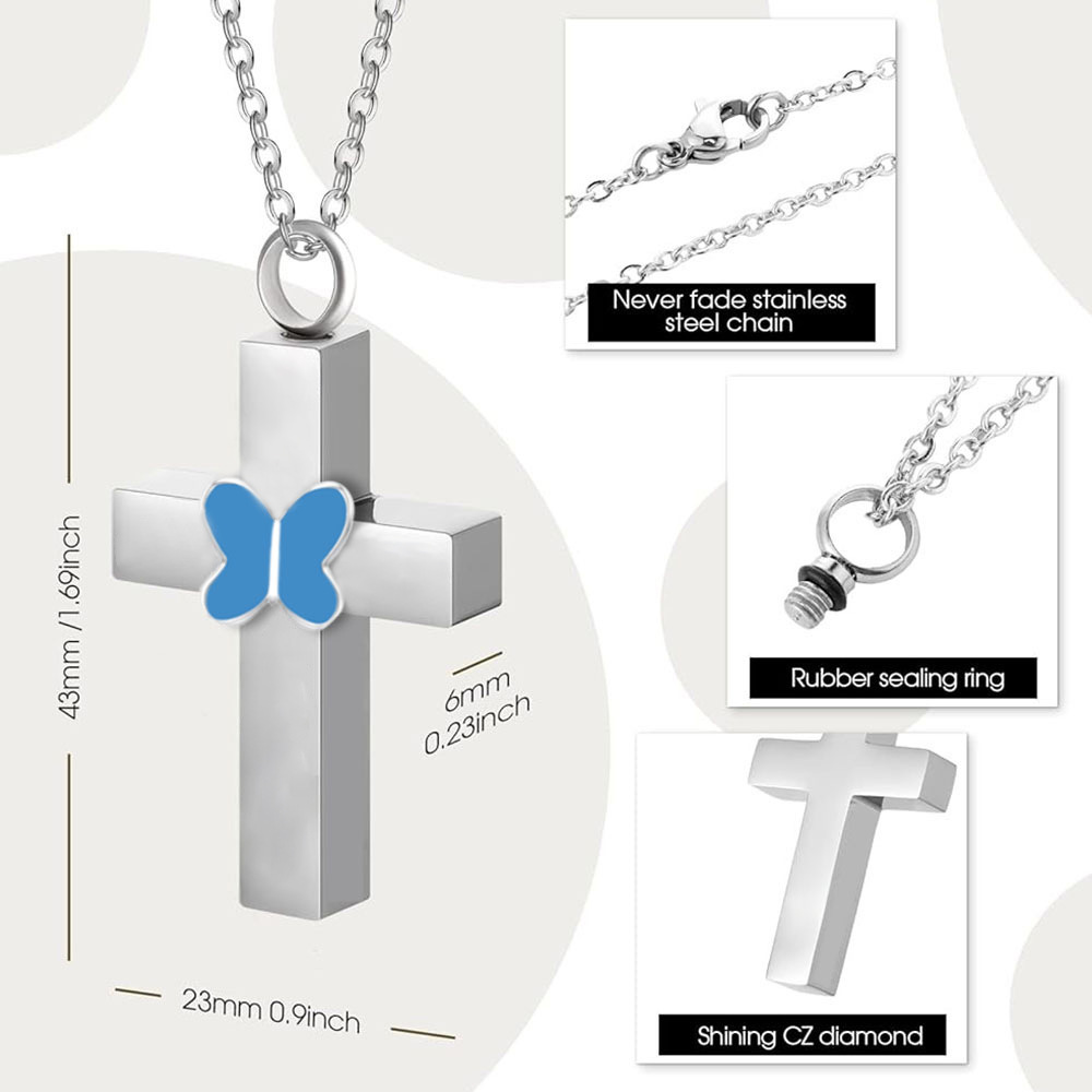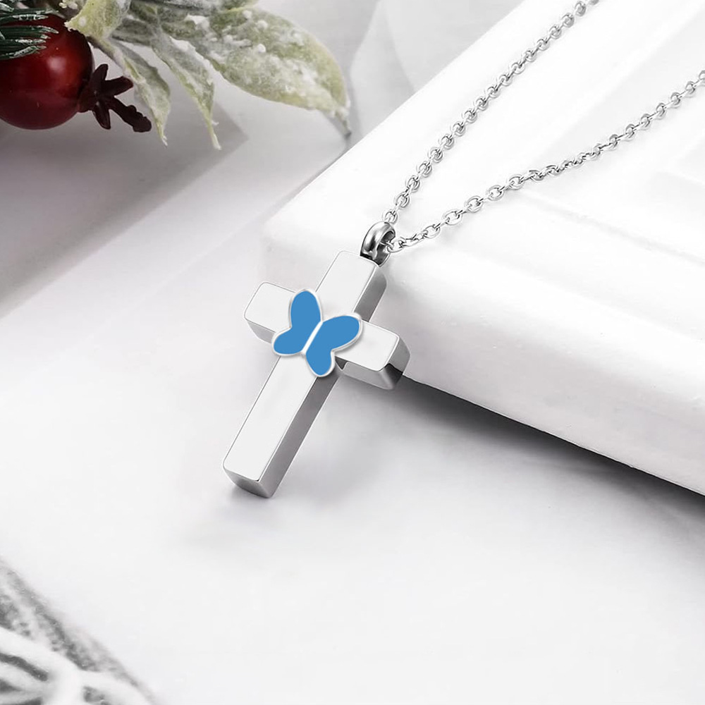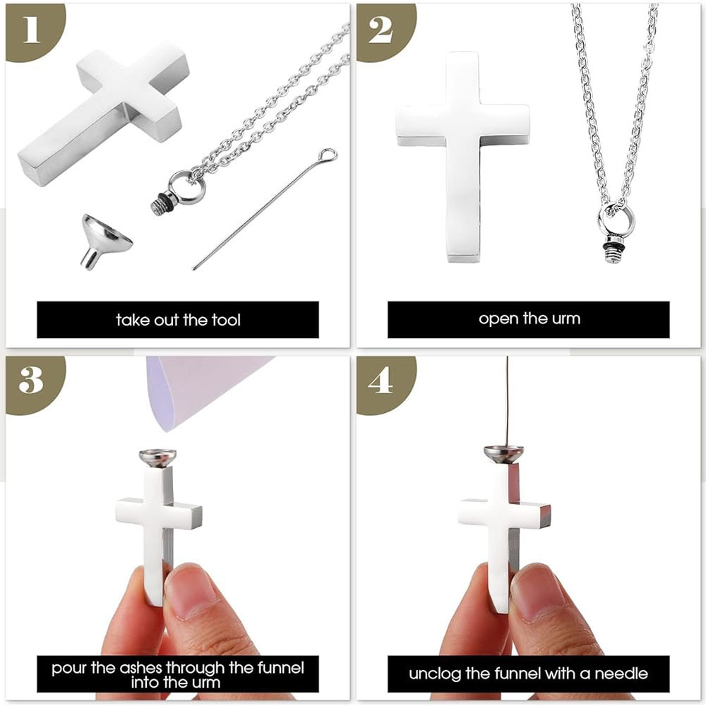 Acier inoxydable 304 Collier de cercueil cinéraire, croix, Placage de couleur argentée, DIY, couleurs mélangées, 25x20x6mm, Vendu par PC