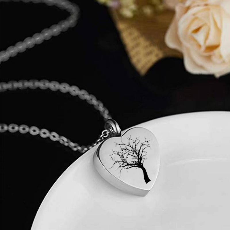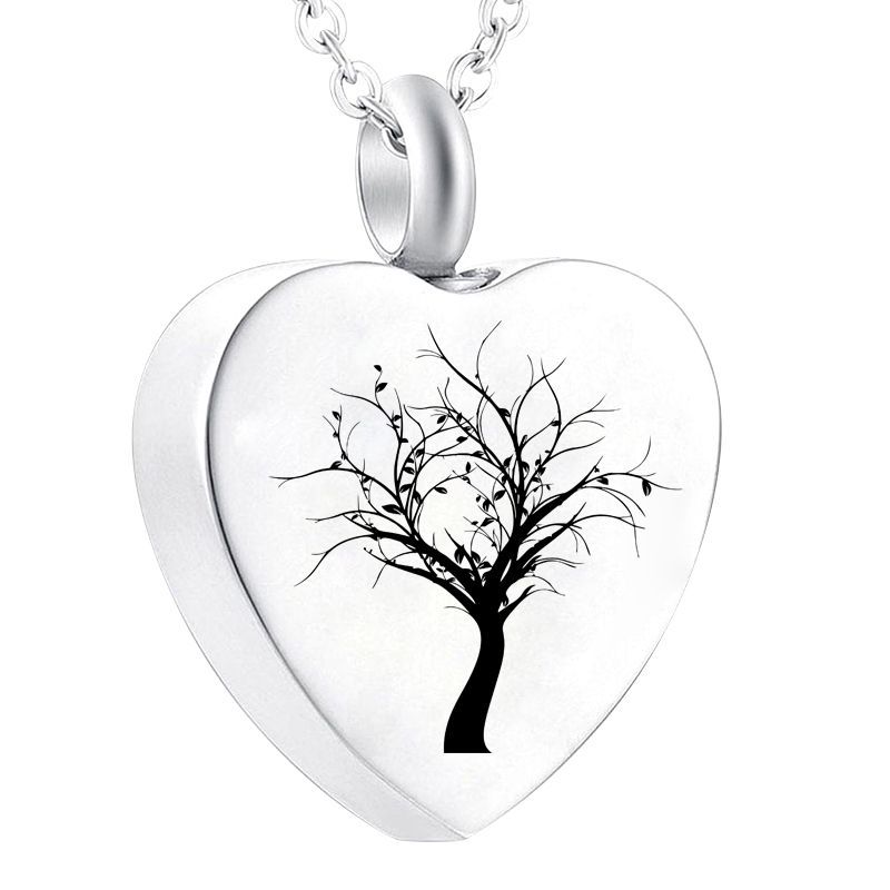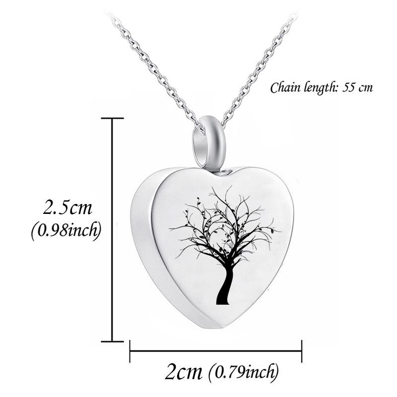 Acier inoxydable 304 Collier de cercueil cinéraire, coeur, Placage de couleur argentée, bijoux de mode, argent, Vendu par PC