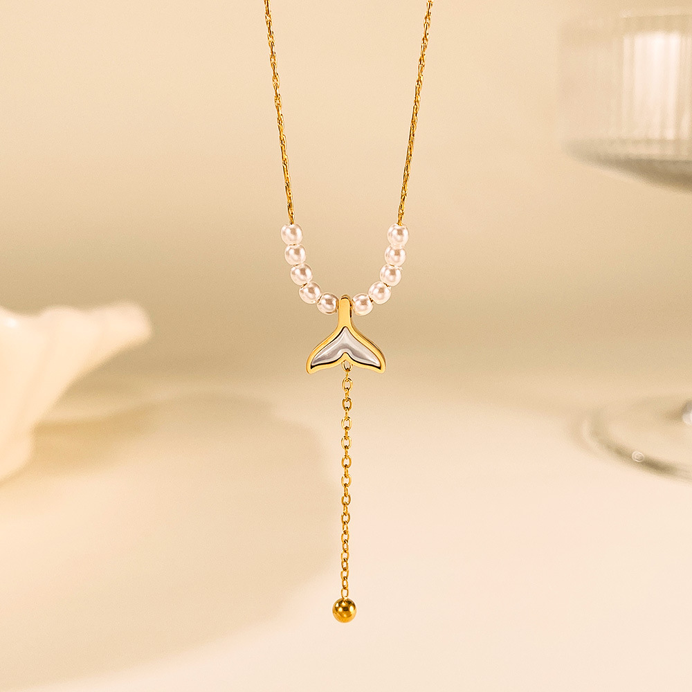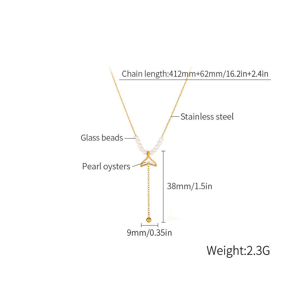 Acier inoxydable 304 Collier frange, avec Huître perlière & Des billes de verre, Placage, bijoux de mode & pour femme, doré, Vendu par PC
