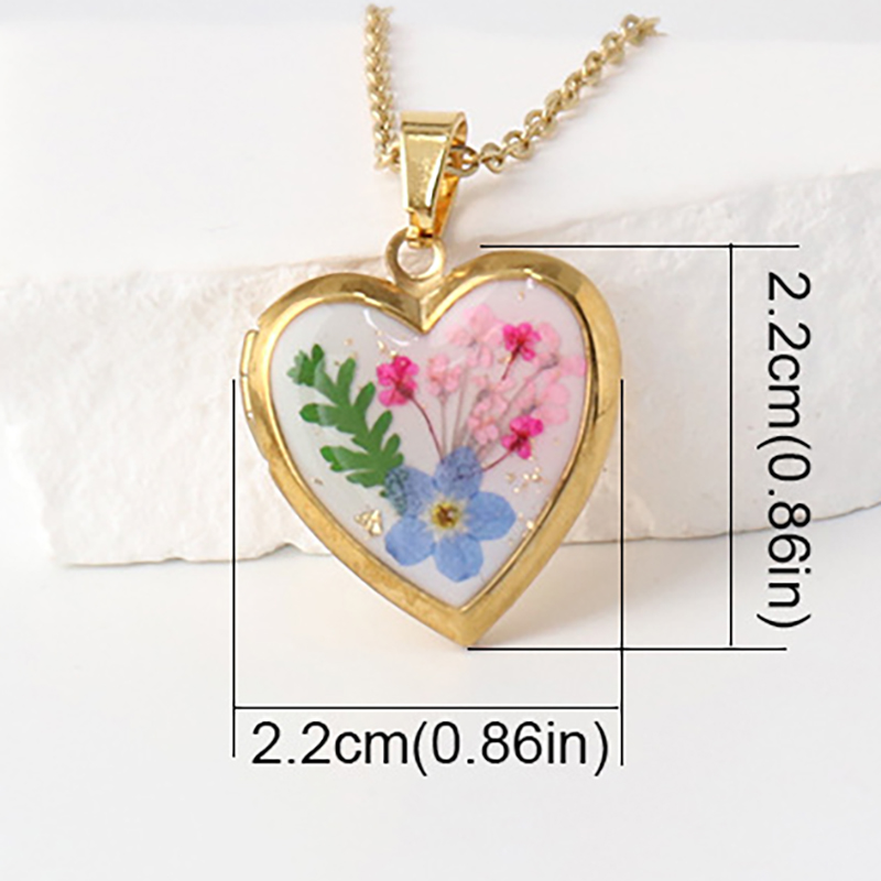 Acier inoxydable 304 Collier médaillon, avec 304 chaîne en acier inoxydable & Fleurs séchées & résine, peut s’ouvrir et mettre dans quelque chose & modèles différents pour le choix & pour femme, doré, Longueur:Environ 45 cm, 6PC/sac, Vendu par sac