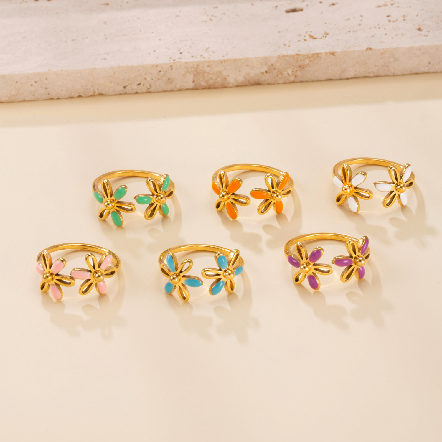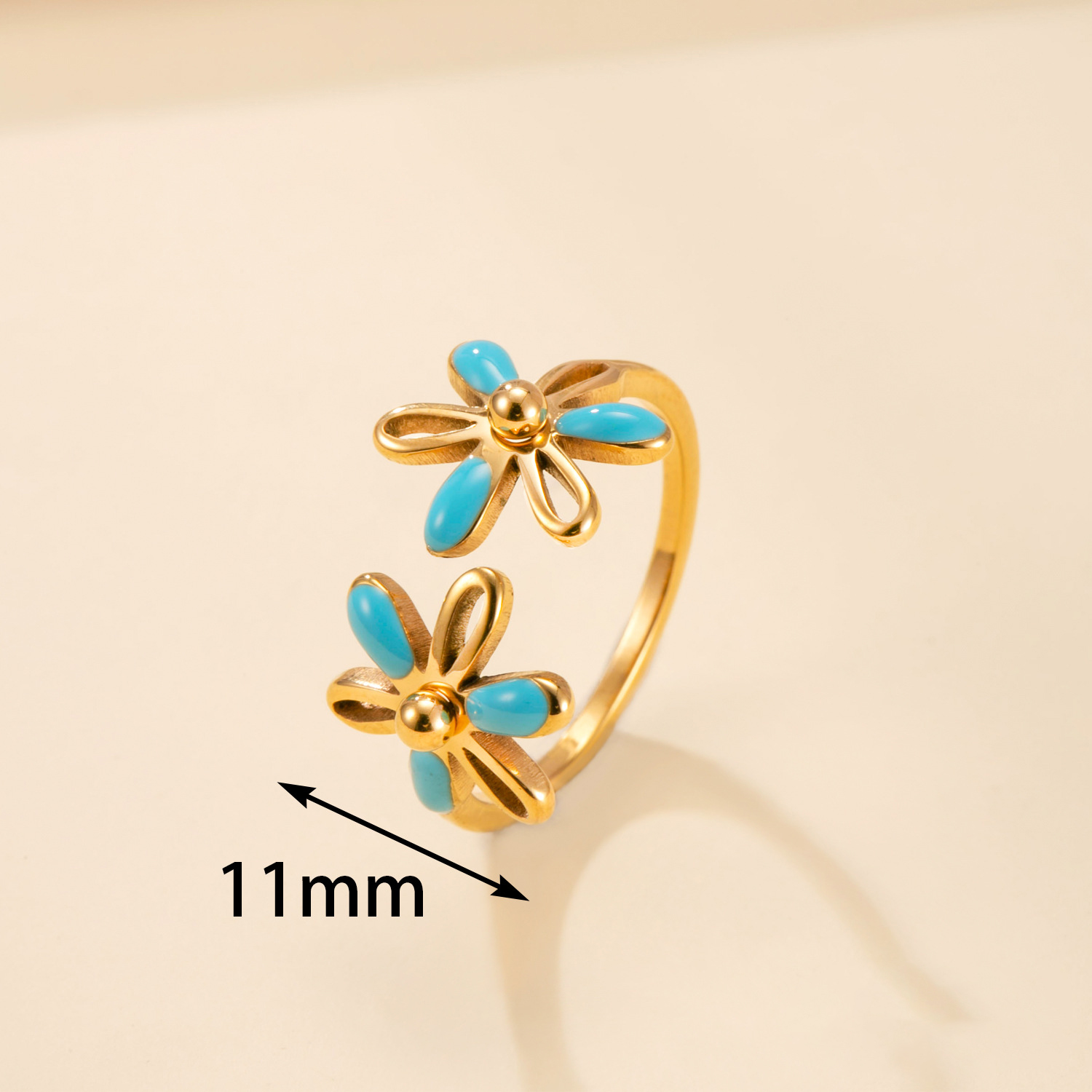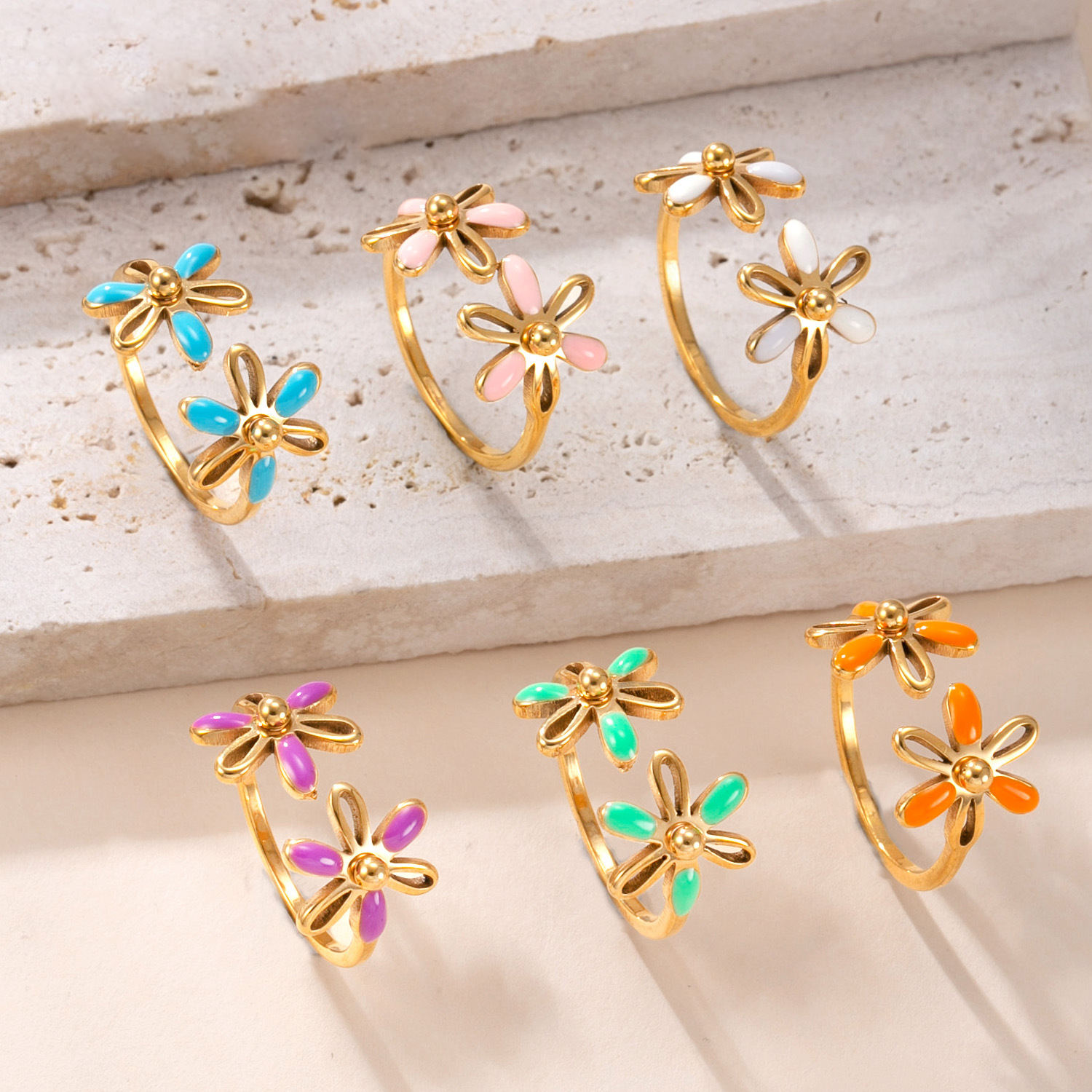 Acier inoxydable 304 Cuff Bague, fleur, Placage de couleur d'or, pour femme & émail & creux, plus de couleurs à choisir, Vendu par PC